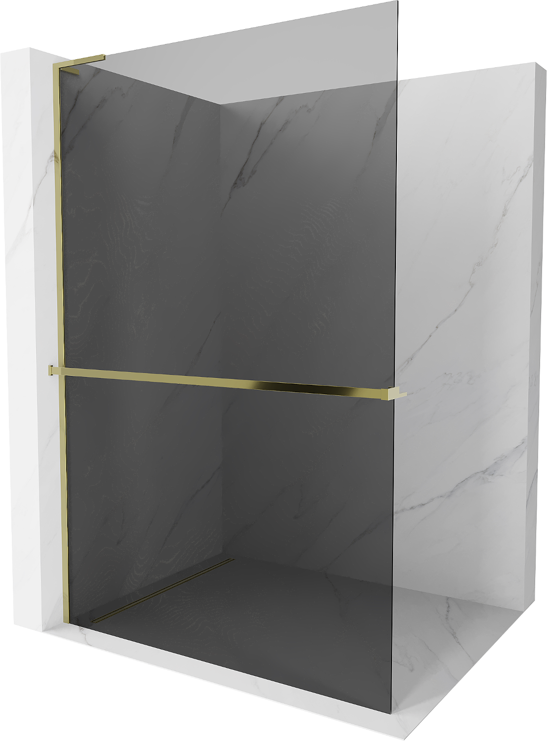 Mexen Kioto+ L paroi de douche avec étagère Walk-in 110 x 200 cm, graphite, or - 800-110-123-50-40