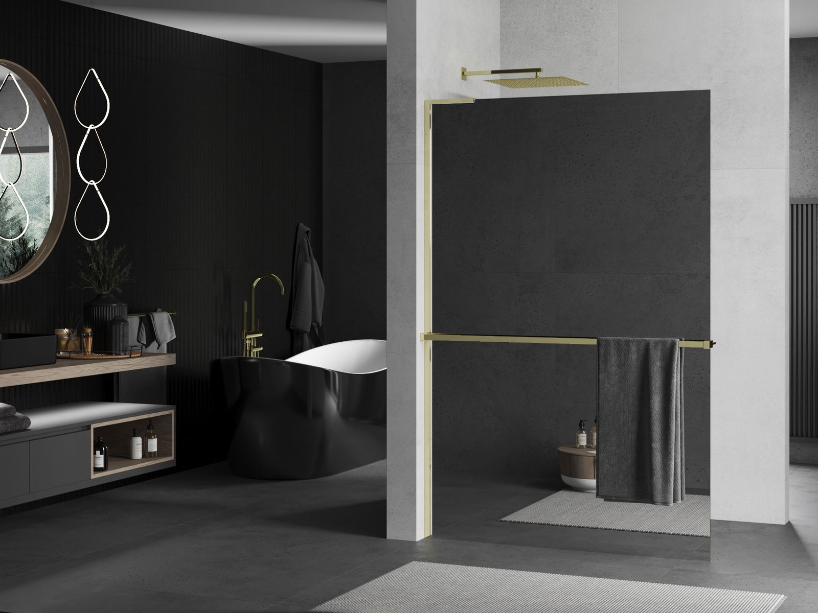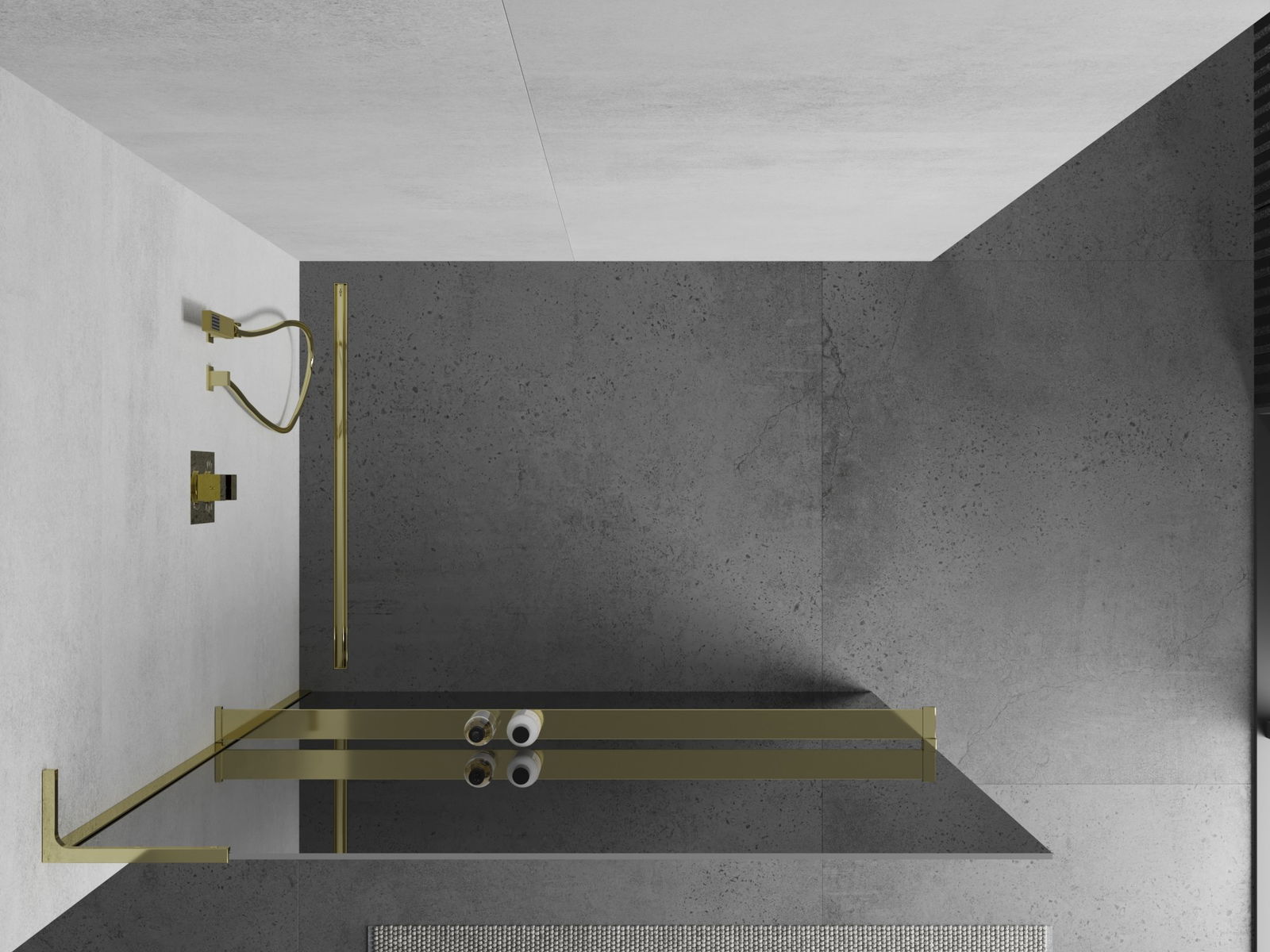 Mexen Kioto+ L cloison de douche avec étagère Walk-in 80 x 200 cm, miroir, dorée - 800-080-123-50-50