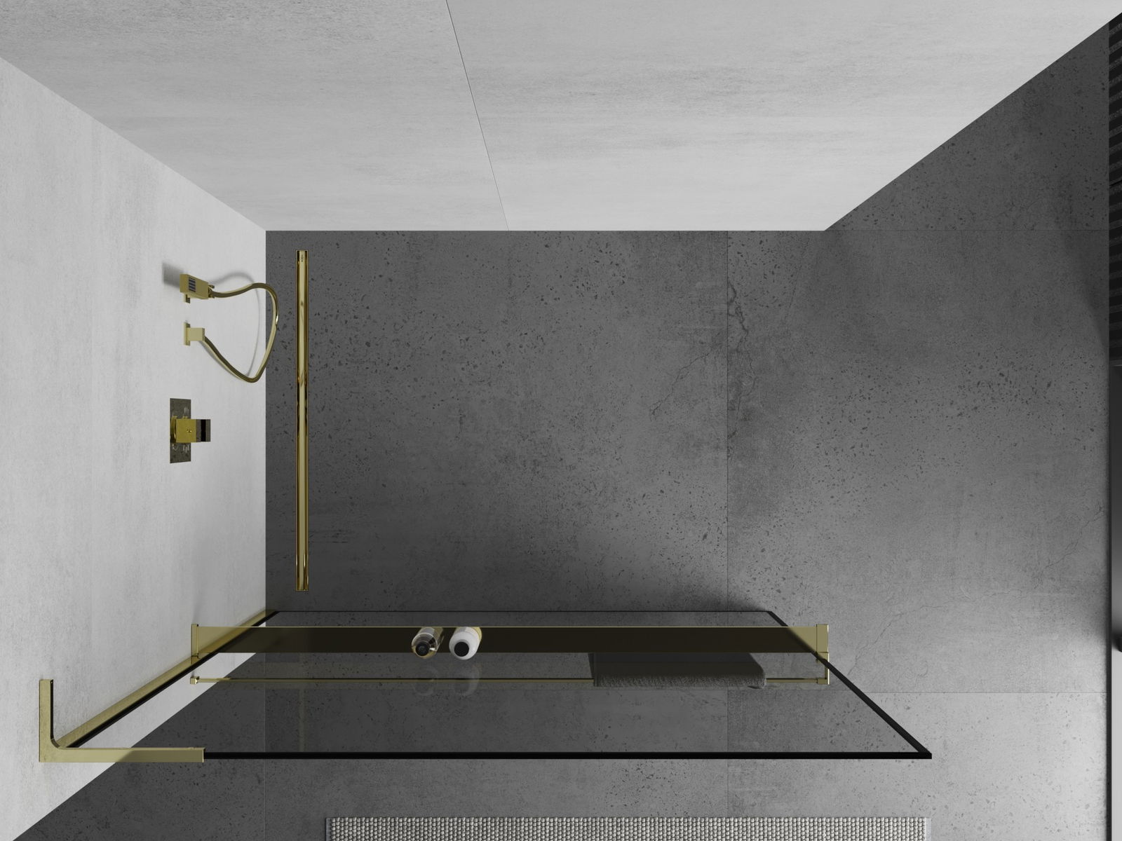 Mexen Kioto+ L paroi de douche avec étagère Walk-in 50 x 200 cm, cadre noir, doré - 800-050-123-50-70