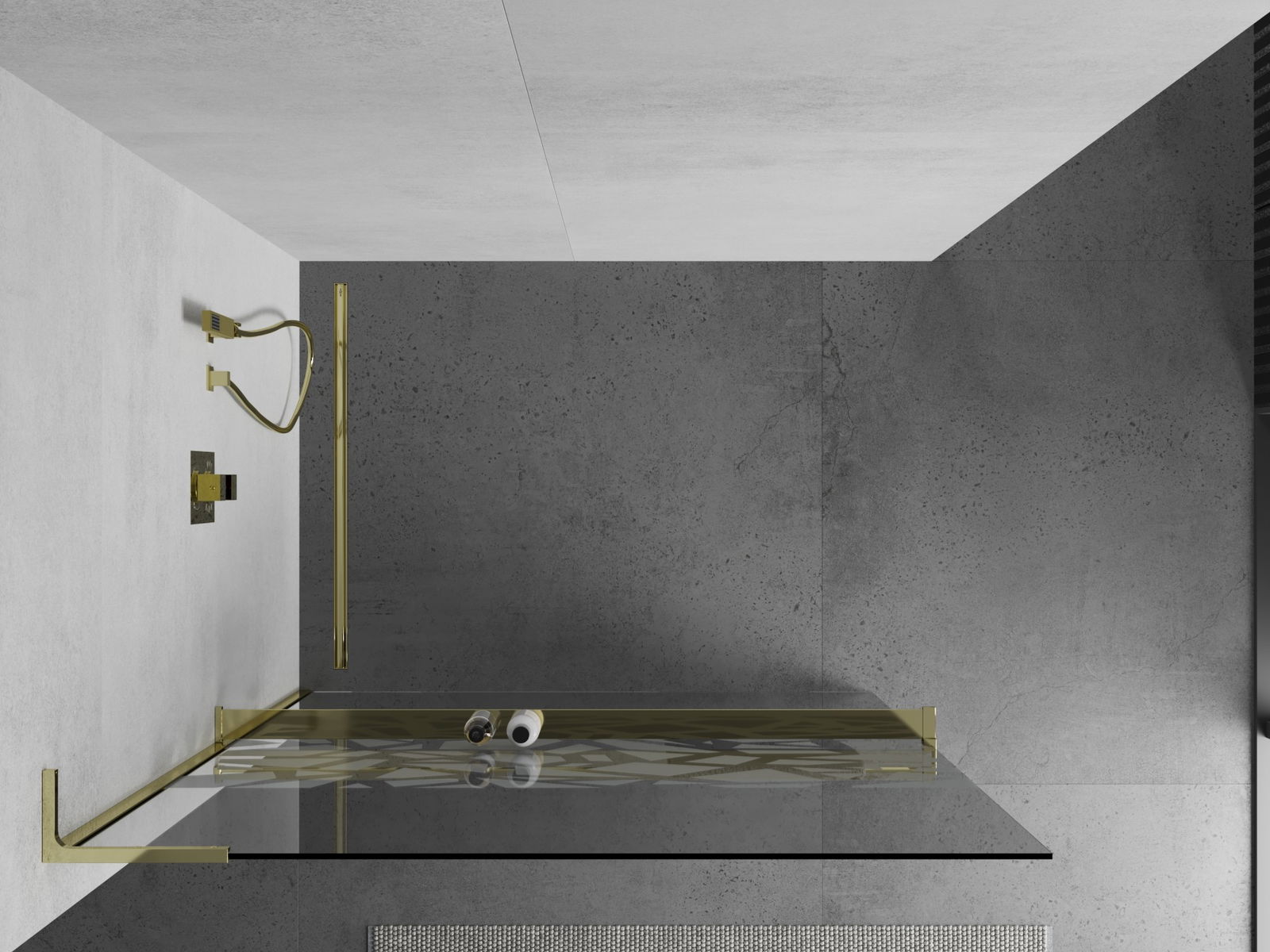 Mexen Kioto+ L paroi de douche avec étagère Walk-in 100 x 200 cm, motif blanc, or - 800-100-123-50-85