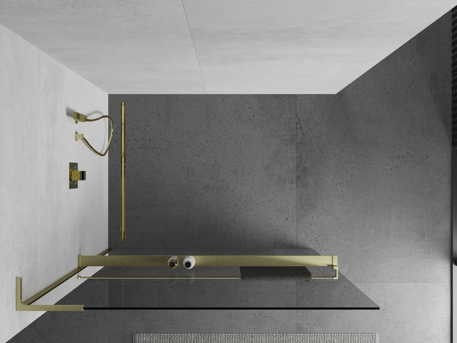 Mexen Kioto+ L paroi de douche avec étagère Walk-in 75 x 200 cm, transparent, or brossé - 800-075-123-55-00