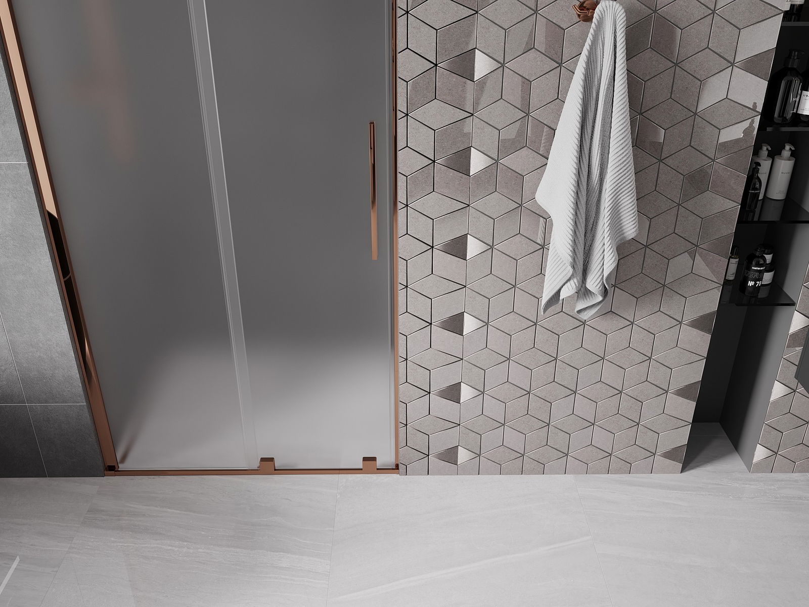 Mexen Velar porte de douche coulissante 120 cm, givre, or rose - 871-120-000-31-60