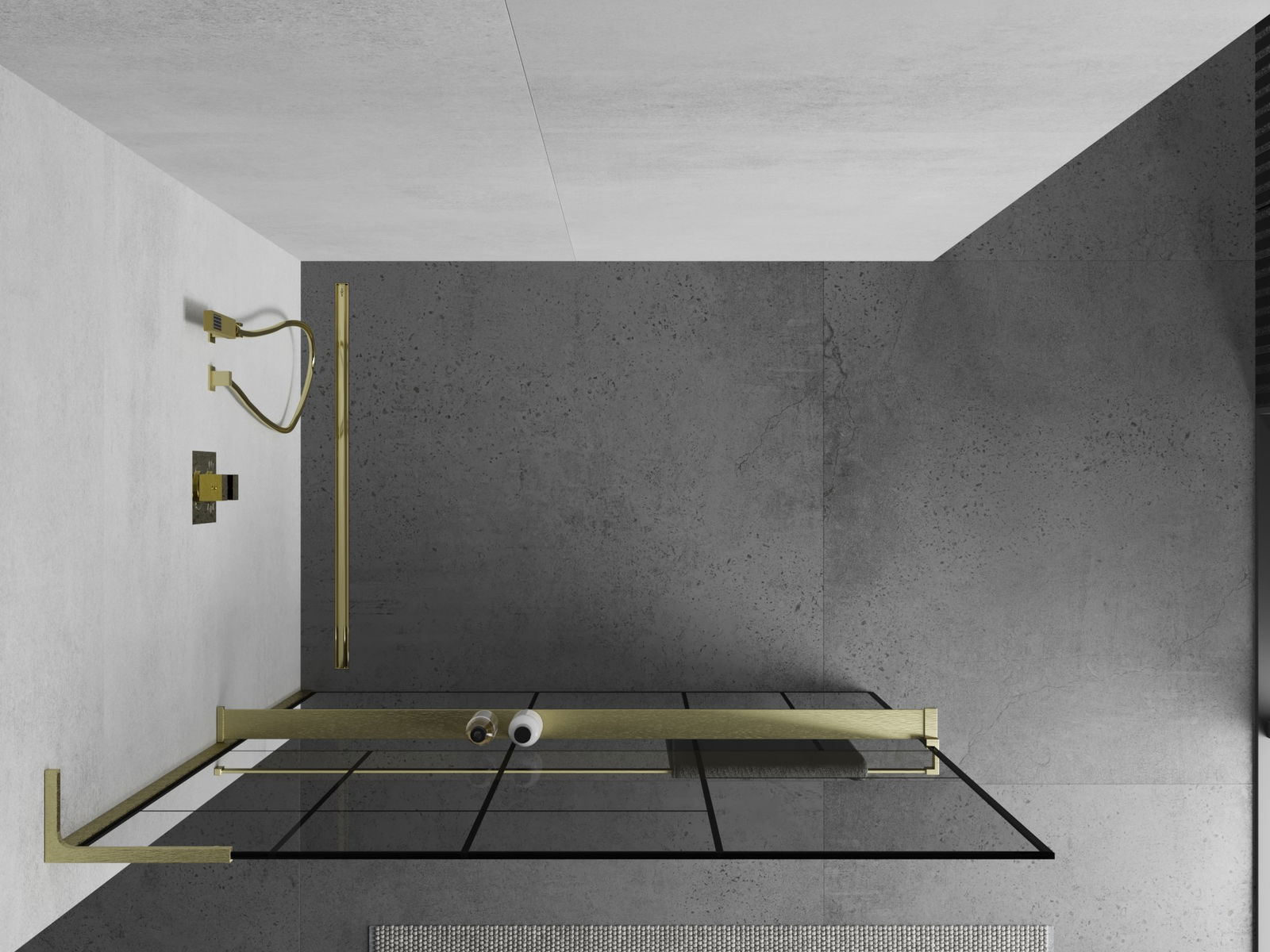 Mexen Kioto+ L paroi de douche avec étagère Walk-in 100 x 200 cm, motif noir, or brossé - 800-100-123-55-78