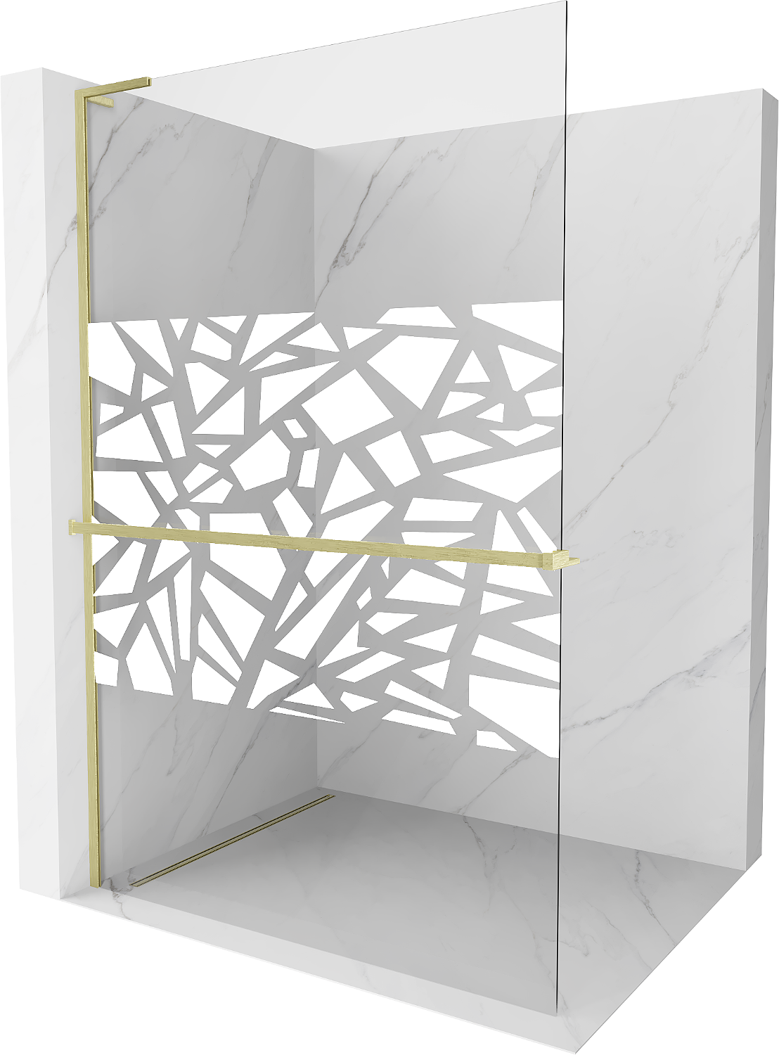 Mexen Kioto+ L cloison de douche avec étagère Walk-in 120 x 200 cm, motif blanc, or brossé - 800-120-123-55-85
