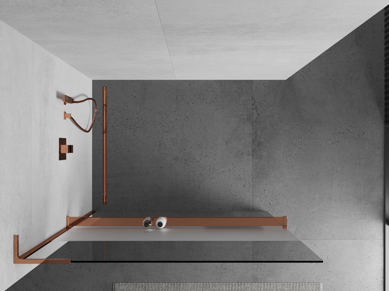 Mexen Kioto+ L paroi de douche avec étagère Walk-in 120 x 200 cm, transparent/givré, or rose - 800-120-123-60-35