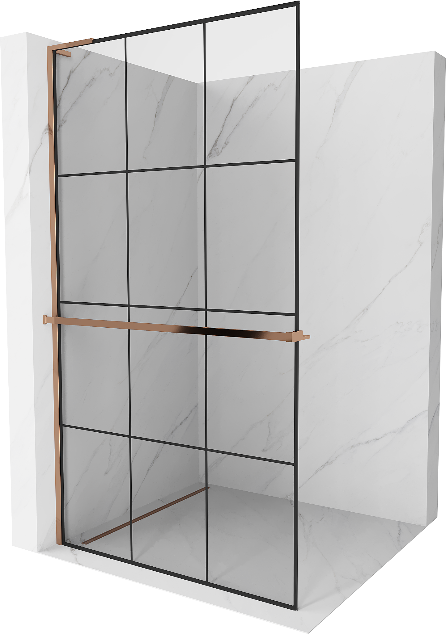 Mexen Kioto+ L paroi de douche avec étagère Walk-in 100 x 200 cm, grille noire, or rose - 800-100-123-60-77