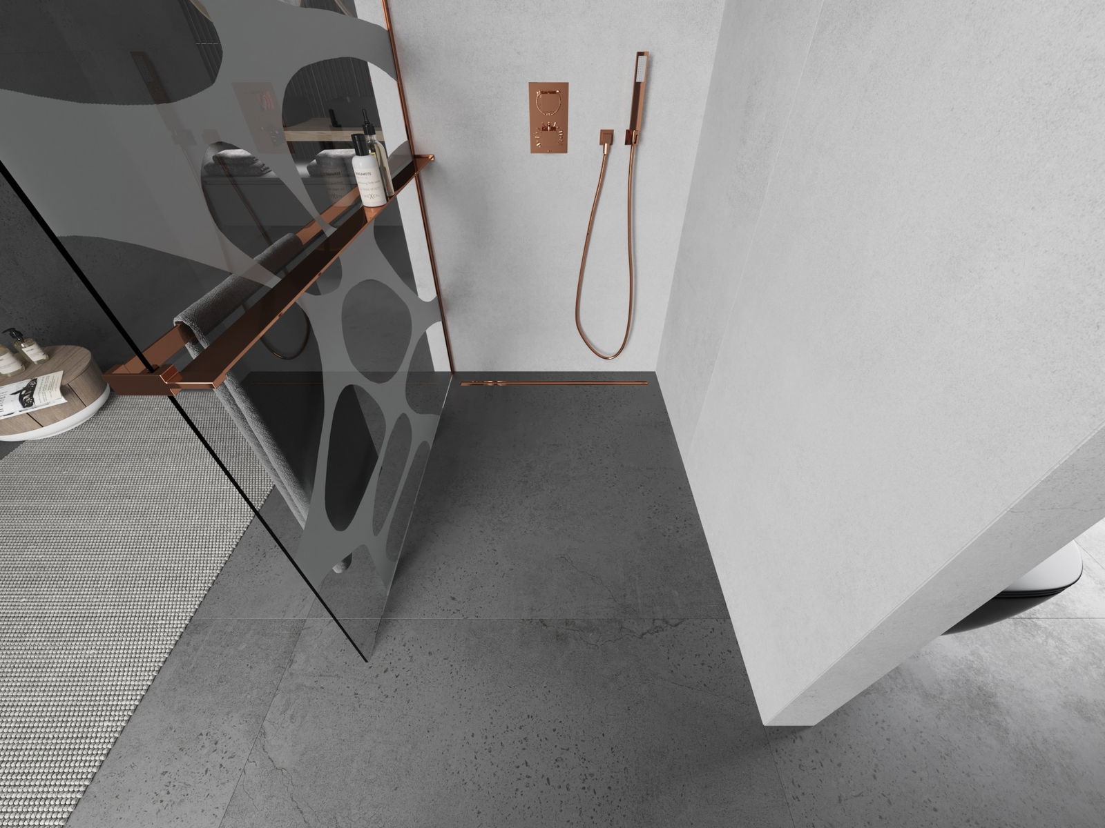 Mexen Kioto+ L paroi de douche avec étagère Walk-in 90 x 200 cm, vague blanche, or rose - 800-090-123-60-97