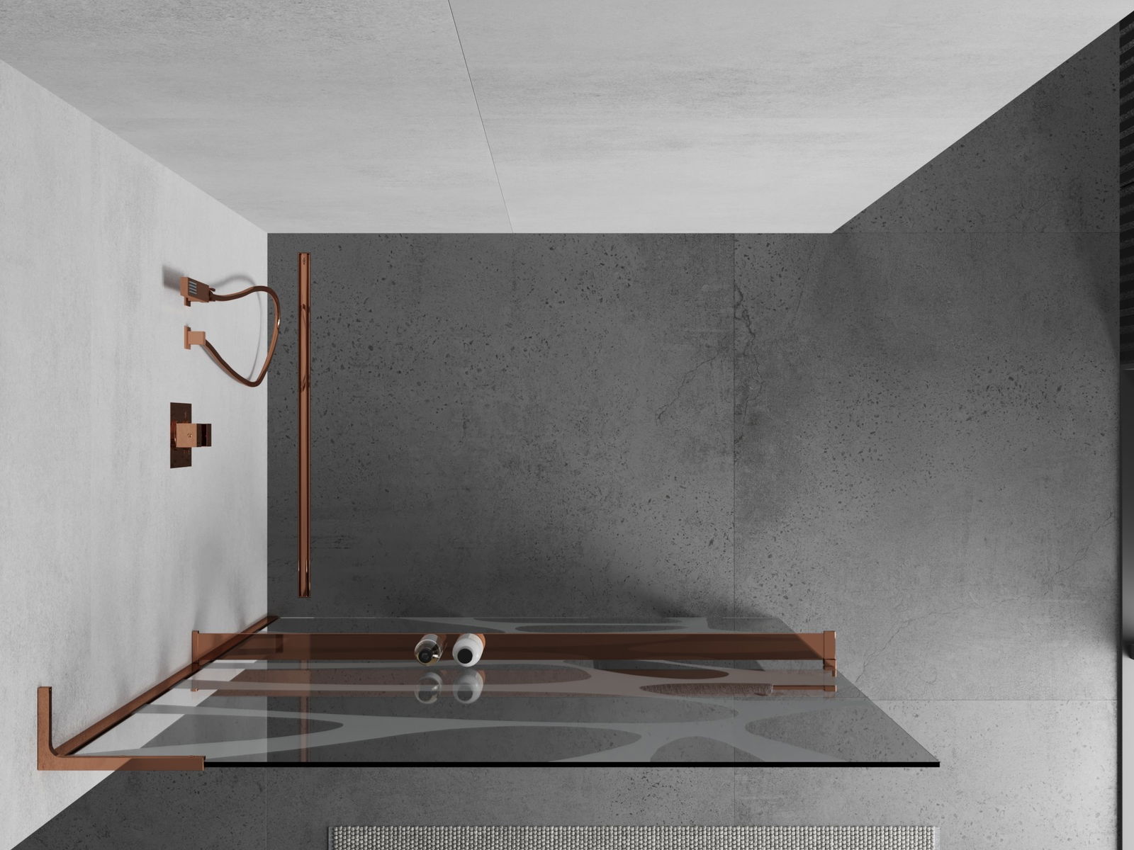 Mexen Kioto+ L paroi de douche avec étagère Walk-in 120 x 200 cm, vague blanche, or rose - 800-120-123-60-97