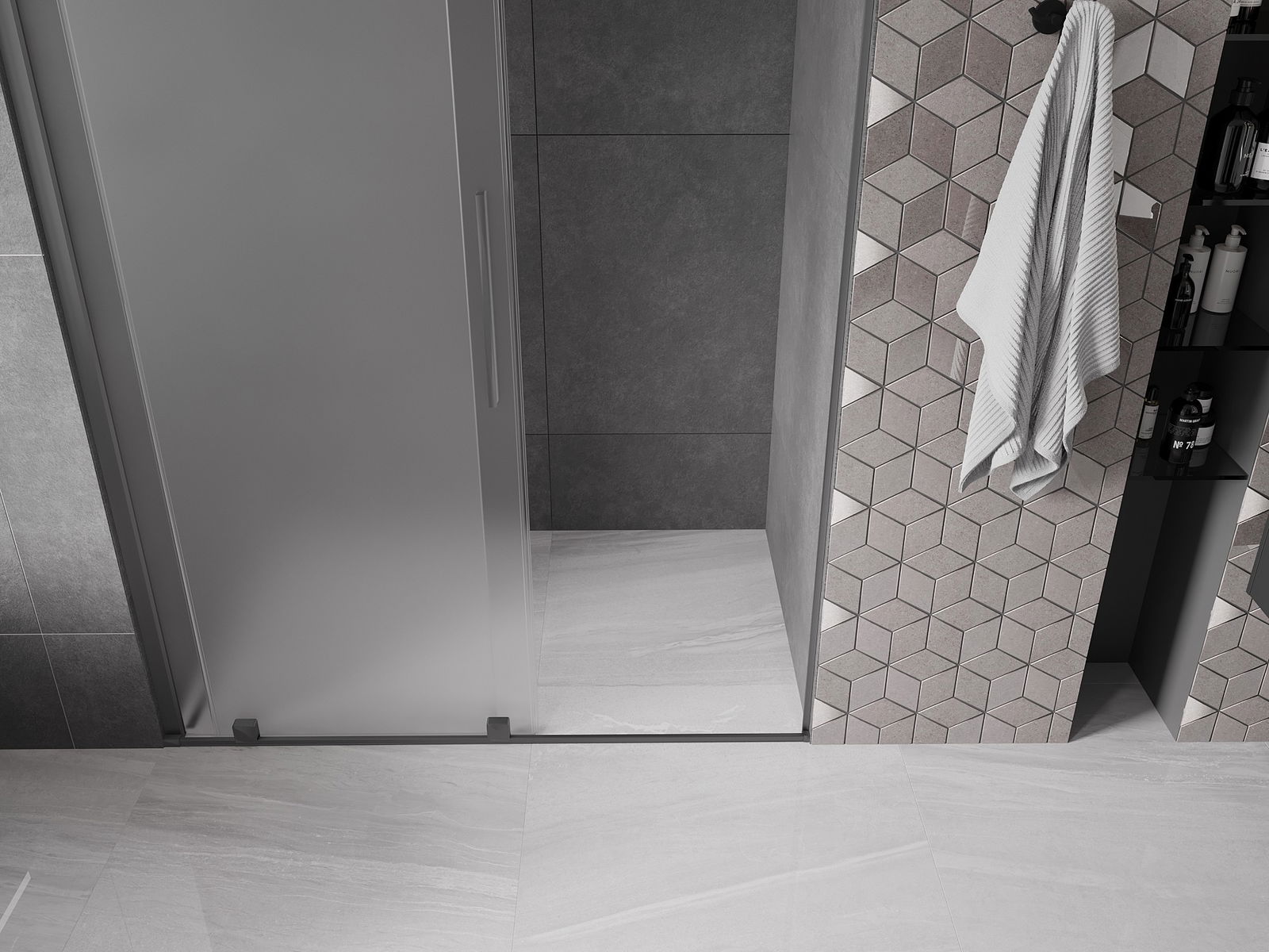 Mexen Velar porte de douche coulissante 130 cm, givré, gun metal - 871-130-000-31-95