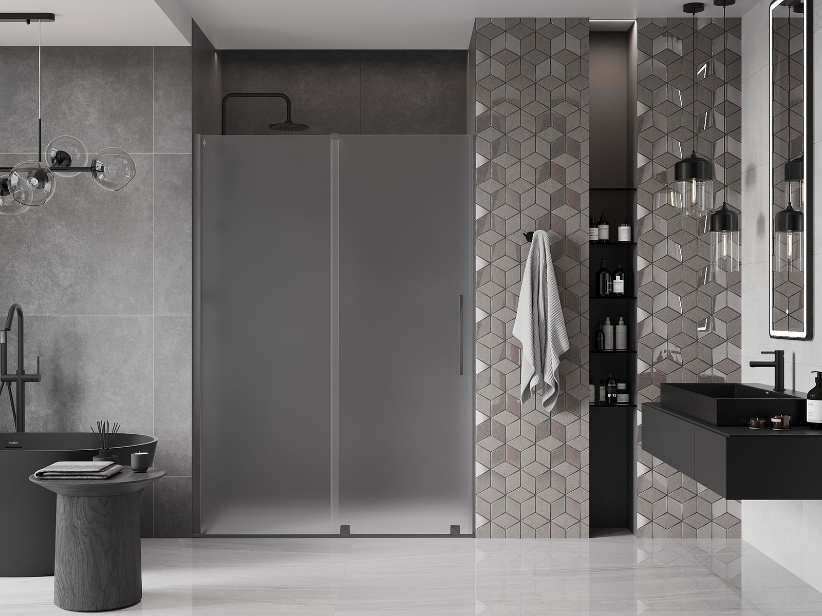 Mexen Velar porte de douche coulissante 140 cm, givré, métal gun - 871-140-000-31-95