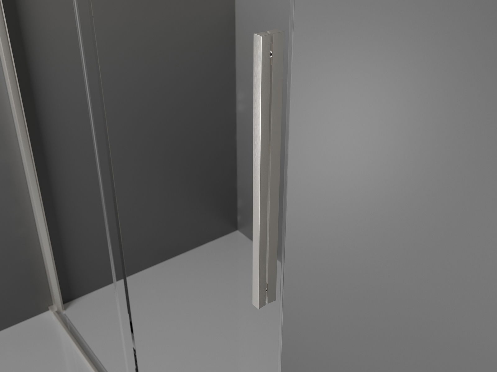 Poignée pratique et confortable en acier inoxydable. La forme moderne associée à une finition assortie à la couleur des profilés confère à l'ensemble un aspect moderne et élégant, soulignant l'esthétique de chaque salle de bain.