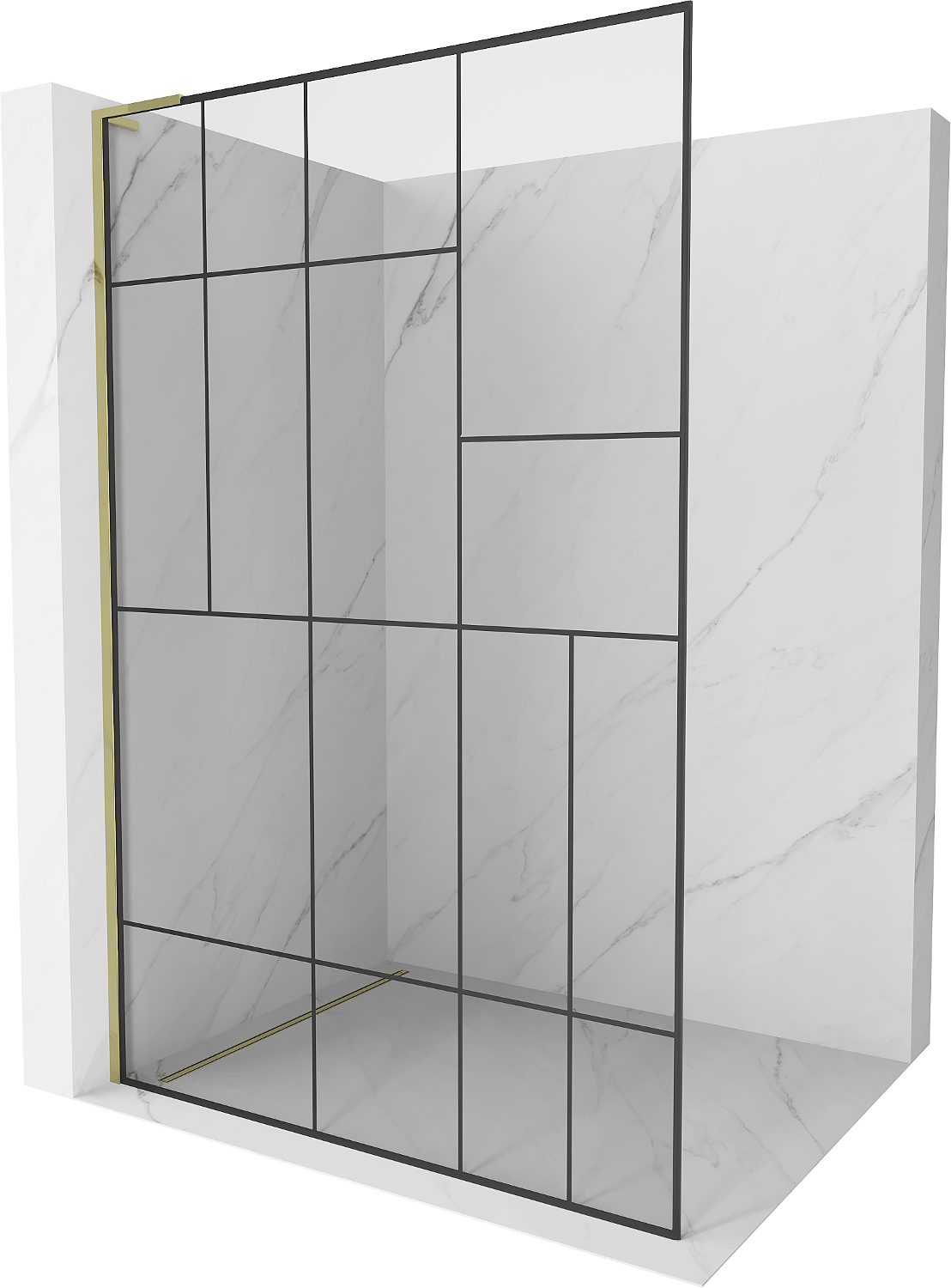 Mexen Kioto L paroi de douche Walk-in 70 x 200 cm, motif noir, or - 800-070-103-50-78