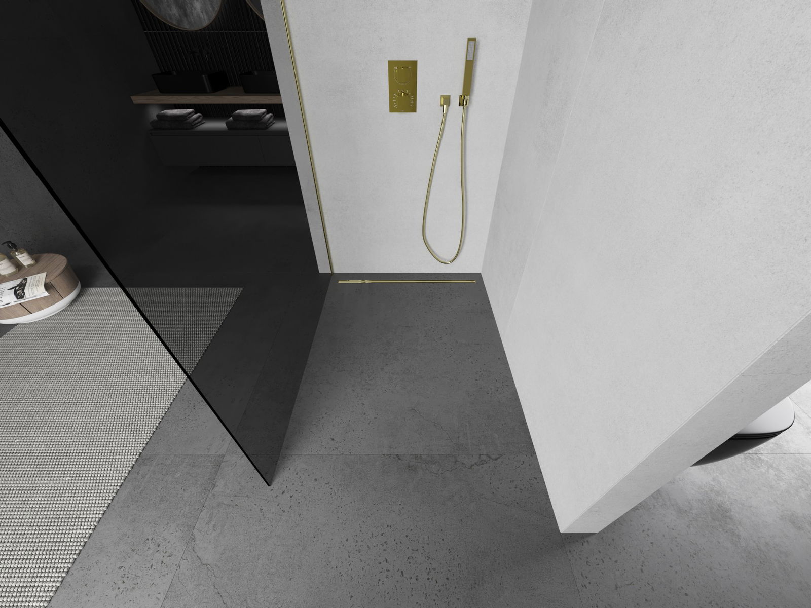 Mexen Kioto L cloison de douche Walk-in 80 x 200 cm, graphite, or brossé - 800-080-103-55-40