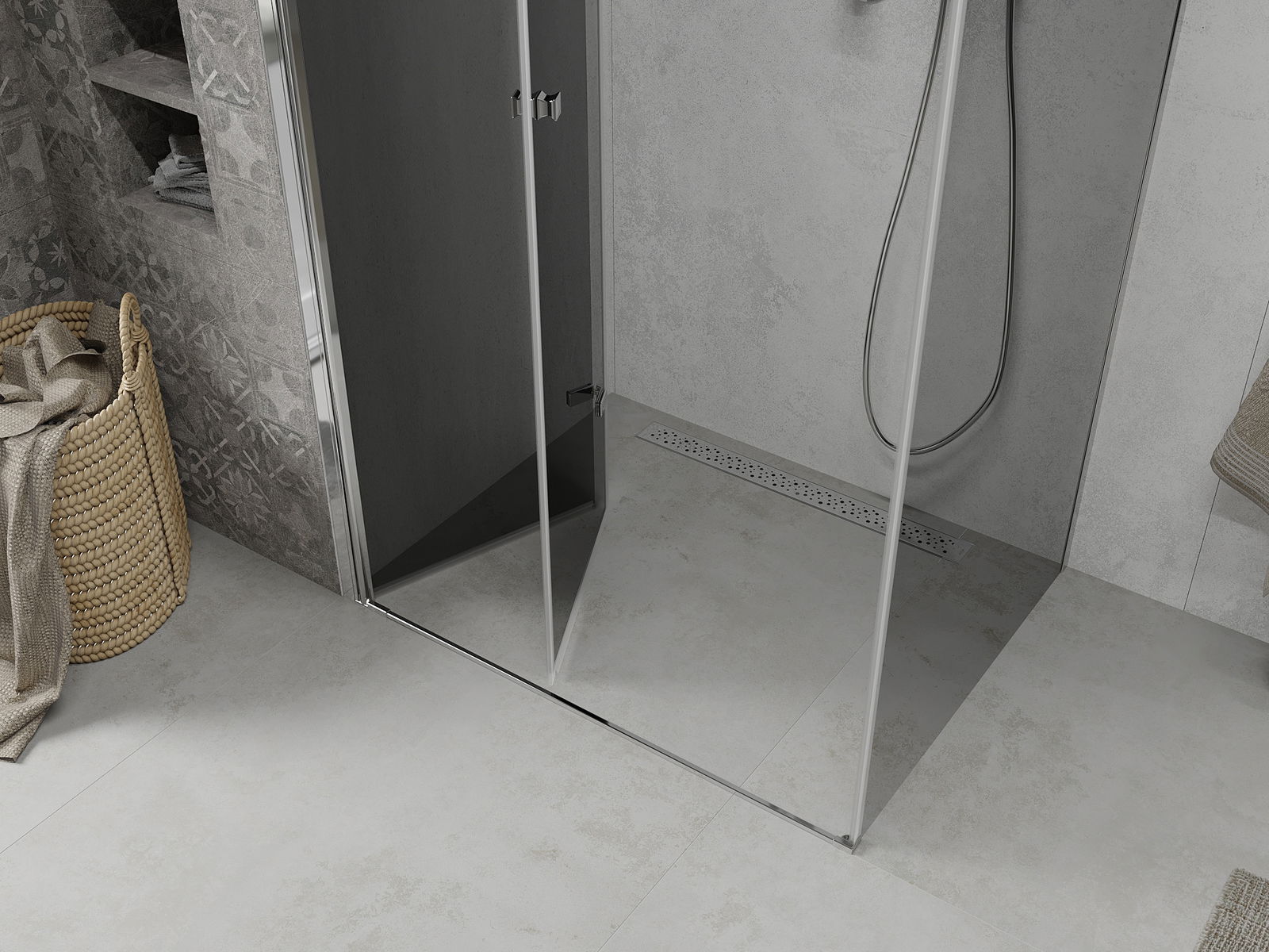 La possibilité de rabattre la porte vers l'extérieur et vers l'intérieur permet de libérer de l'espace lorsque la douche n'est pas utilisée. C'est une solution idéale pour les petites salles de bains, optimisant ainsi l'espace disponible.