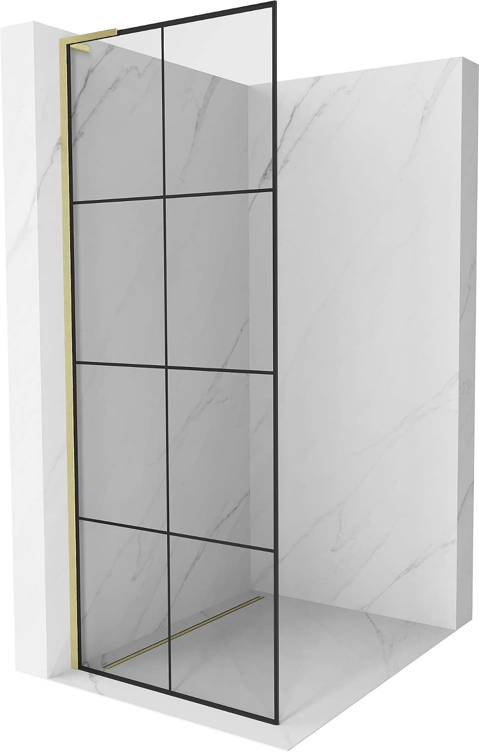 Mexen Kioto L paroi de douche Walk-in 70 x 200 cm, grille noire, or brossé - 800-070-103-55-77