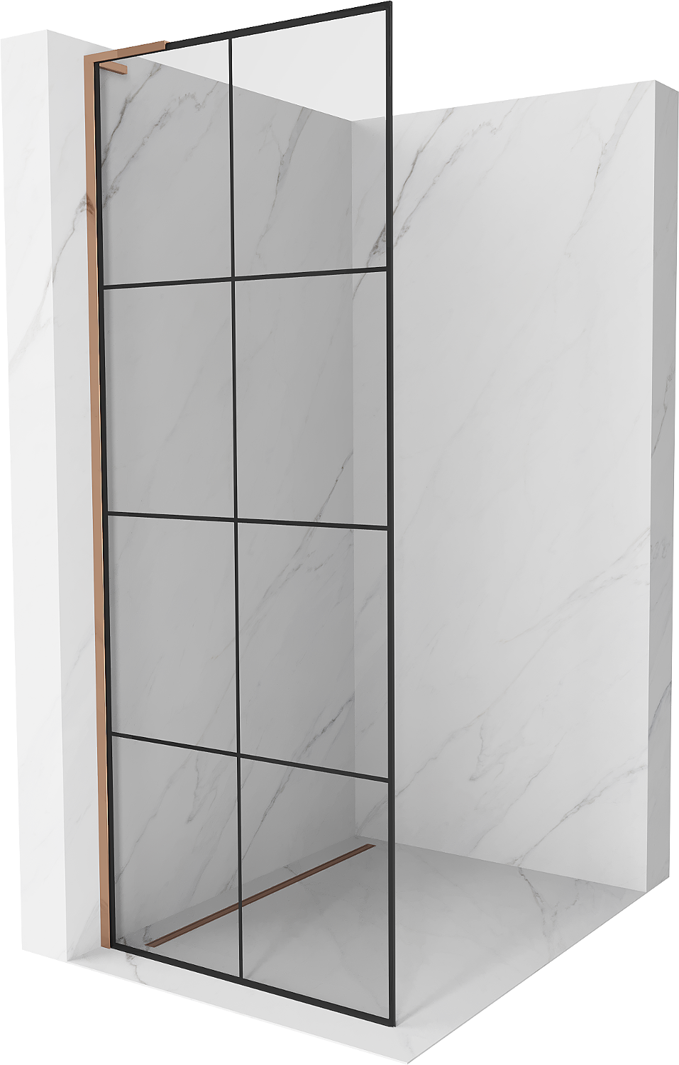 Mexen Kioto L paroi de douche Walk-in 70 x 200 cm, grille noire, or rose - 800-070-103-60-77