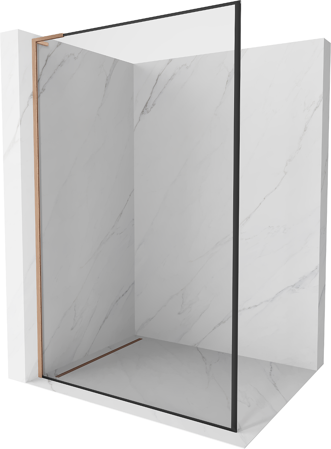 Mexen Kioto L paroi de douche Walk-in 90 x 200 cm, cadre noir, cuivre brossé - 800-090-103-65-70