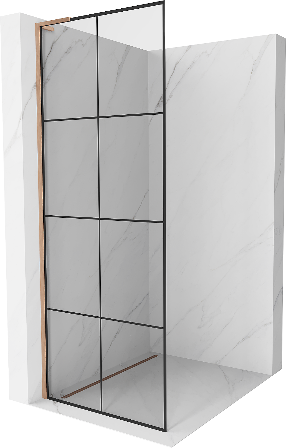 Mexen Kioto L paroi de douche Walk-in 90 x 200 cm, grille noire, cuivre brossé - 800-090-103-65-77