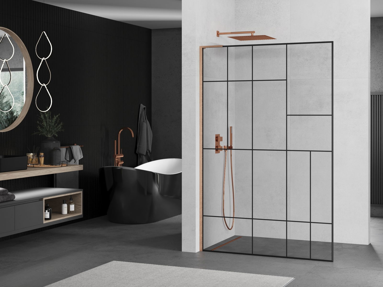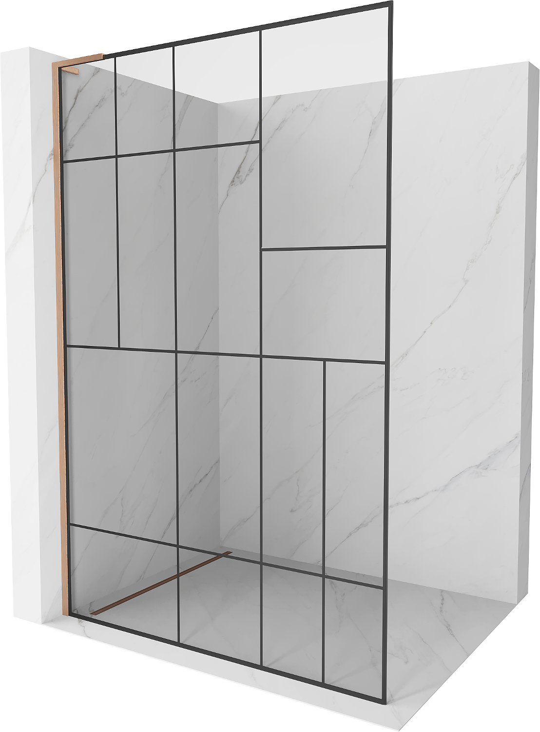 Mexen Kioto L paroi de douche Walk-in 110 x 200 cm, motif noir, cuivre brossé - 800-110-103-65-78