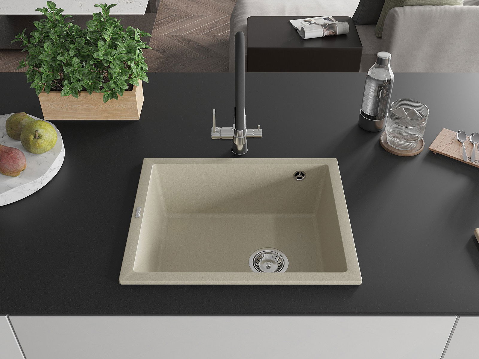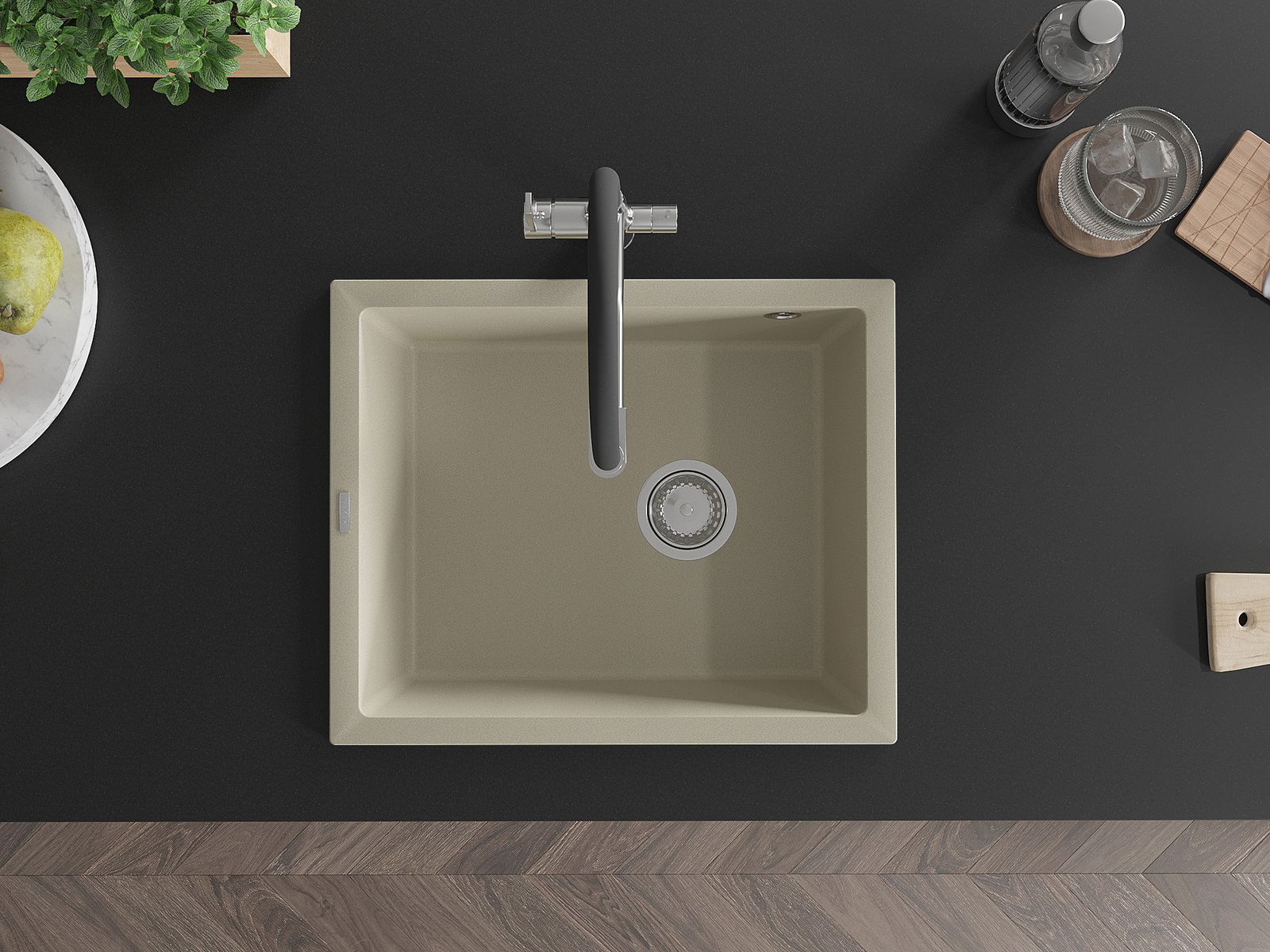 Mexen Pedro évier en granit 1 bac 560 x 460 mm, beige, siphon chromé - 6508561000-69