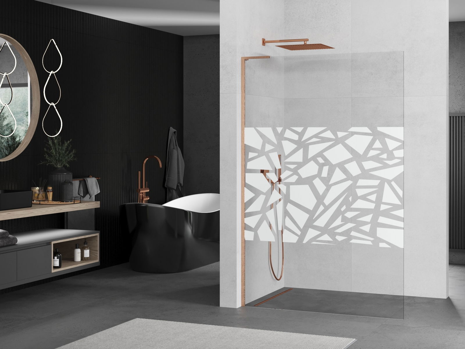 Mexen Kioto L paroi de douche Walk-in 90 x 200 cm, motif blanc, cuivre brossé - 800-090-103-65-85