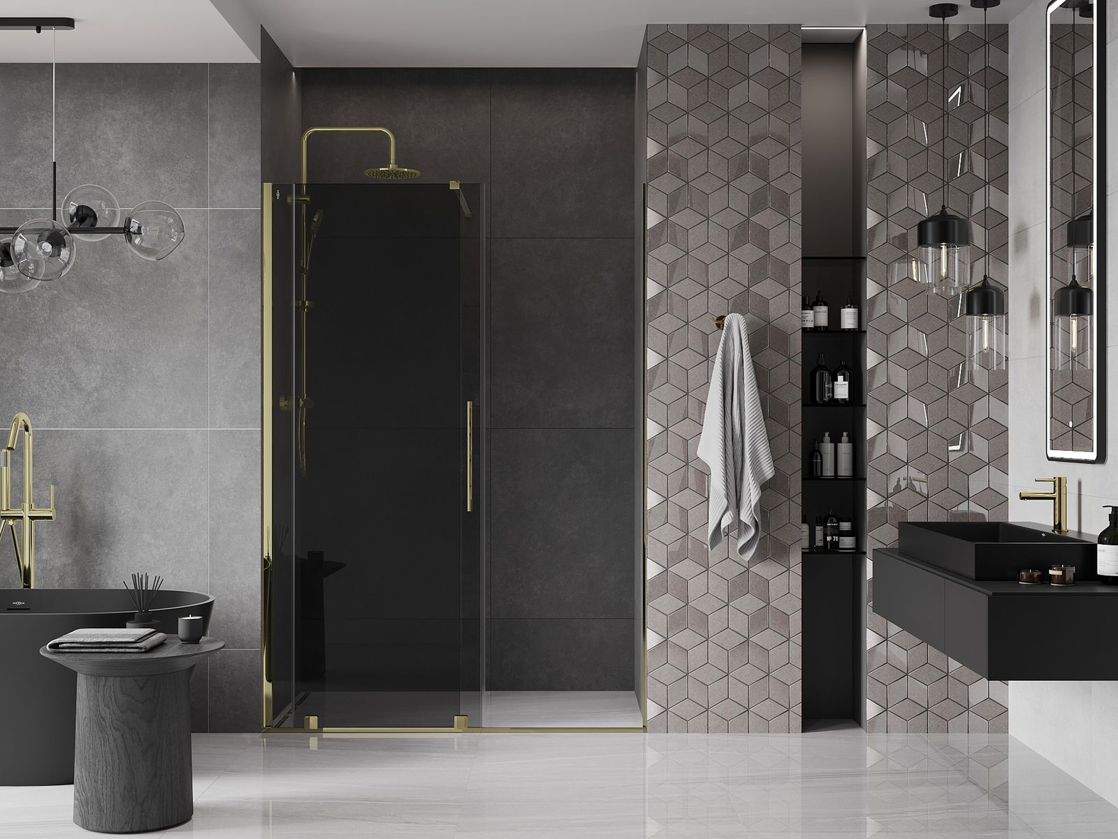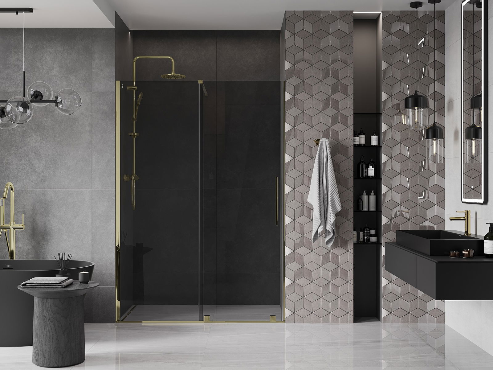 Mexen Velar porte de douche coulissante 140 cm, graphite, doré - 871-140-000-41-50