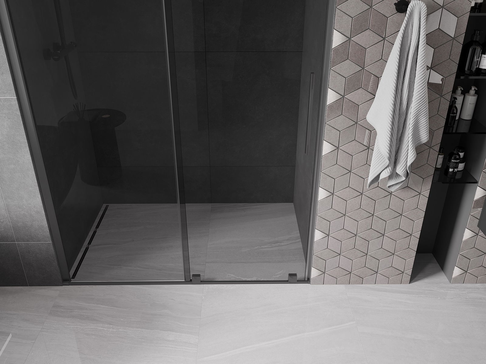 Mexen Velar porte de douche coulissante 130 cm, graphite, métal canon - 871-130-000-41-95