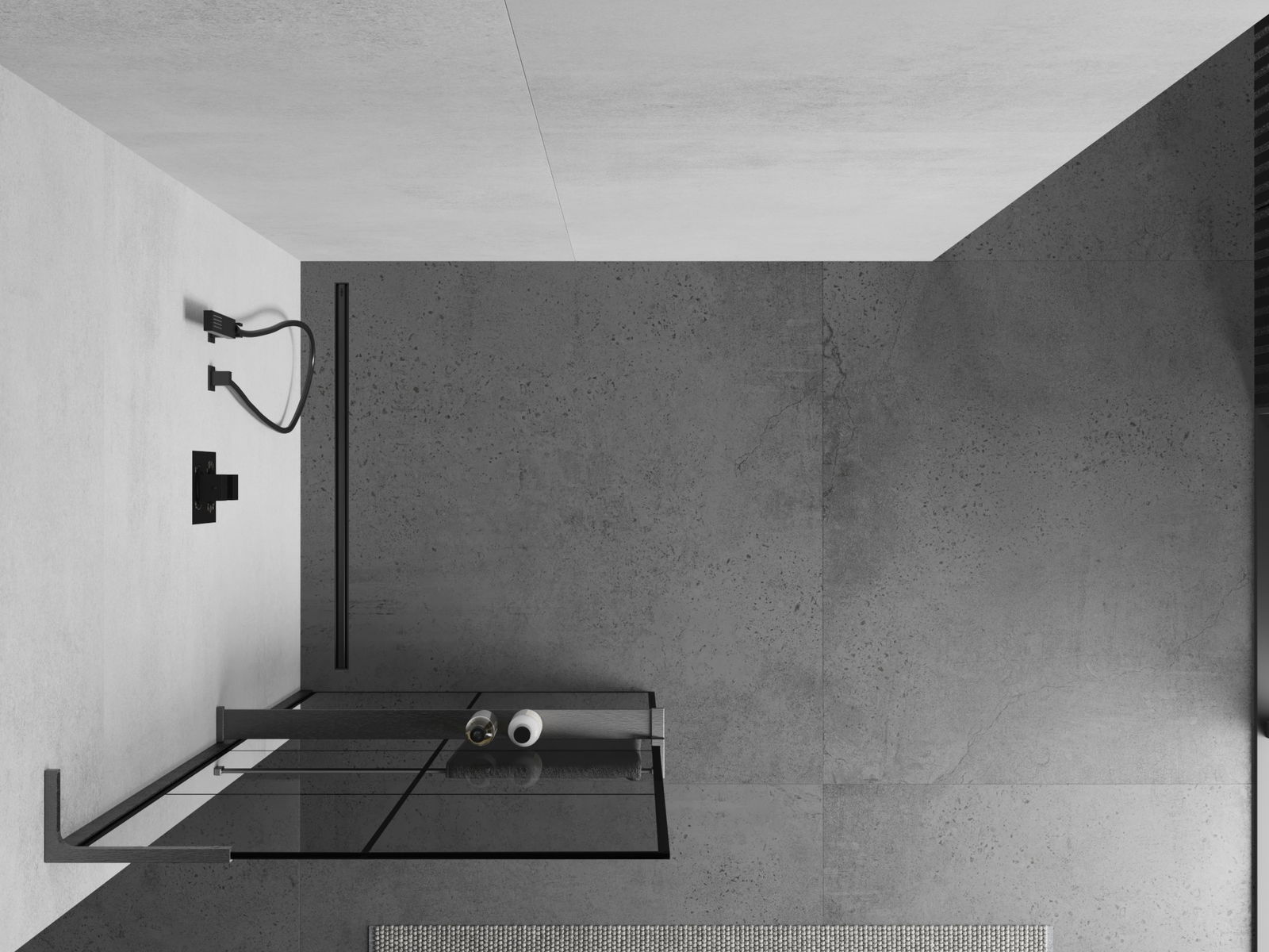 Mexen Kioto+ L paroi de douche avec étagère Walk-in 80 x 200 cm, grille noire, gris fusil brossé - 800-080-123-66-77
