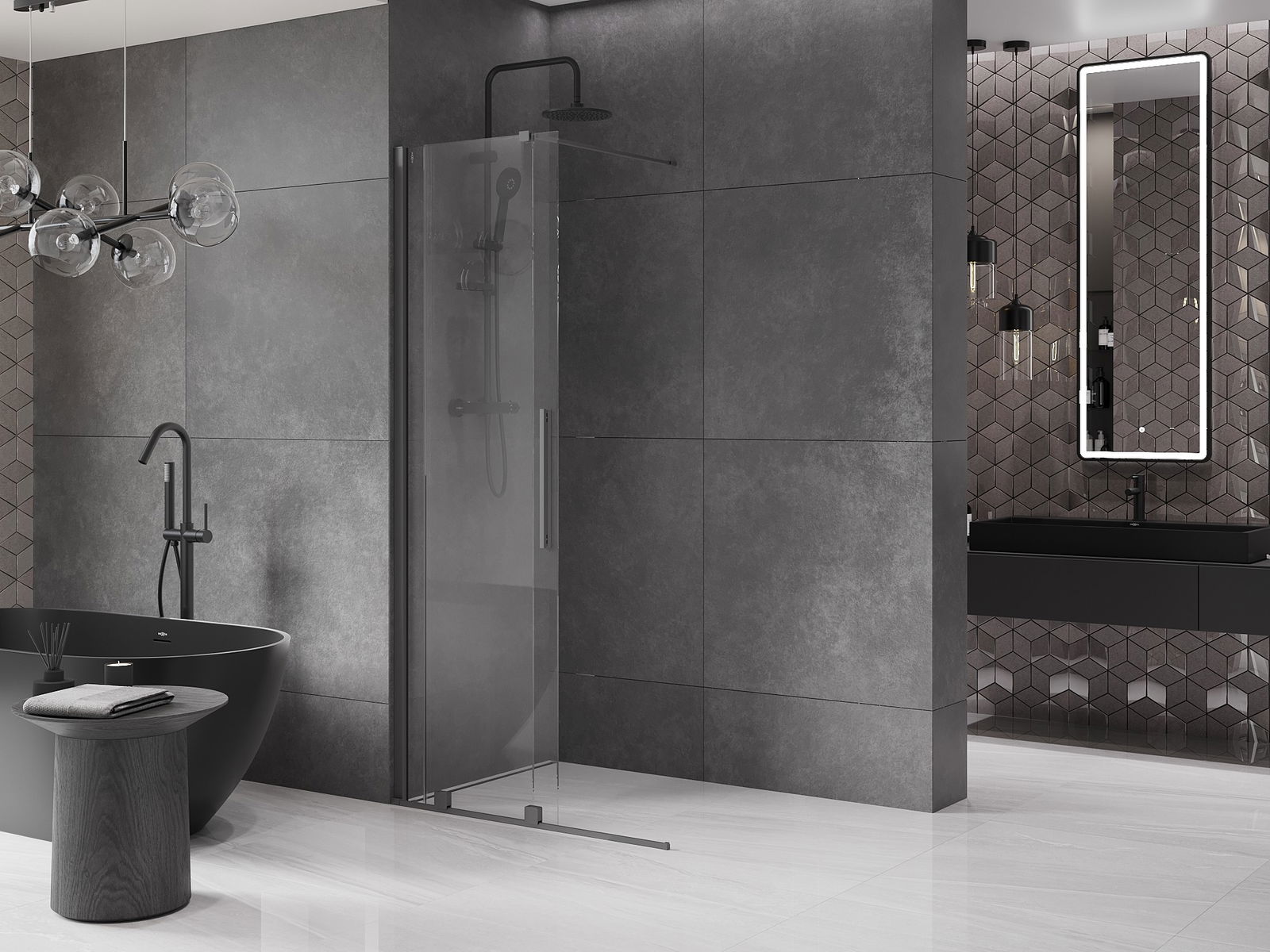Mexen Velar paroi de douche coulissante Walk-in 120 x 200 cm, transparente 8 mm, gun metal - 871-120-000-03-95
