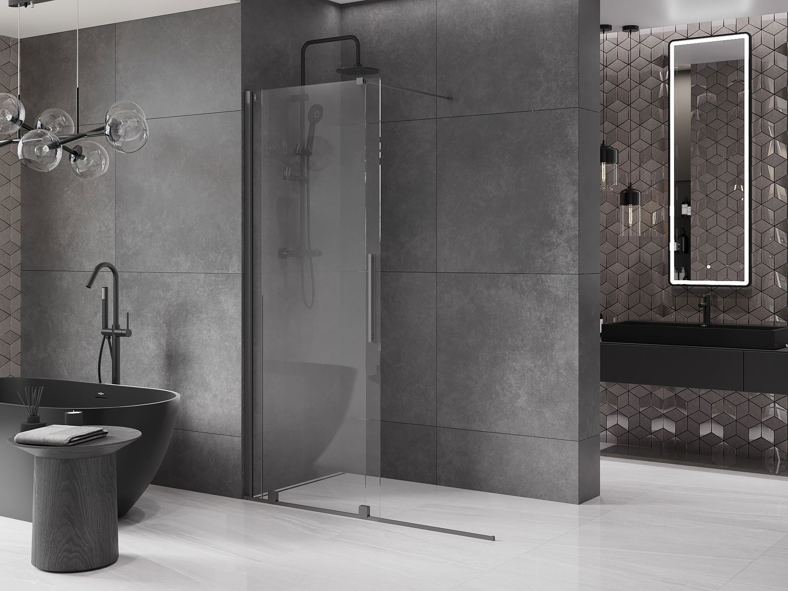 Mexen Velar paroi de douche coulissante Walk-in 150 x 200 cm, transparent 8 mm, gun metal - 871-150-000-03-95
