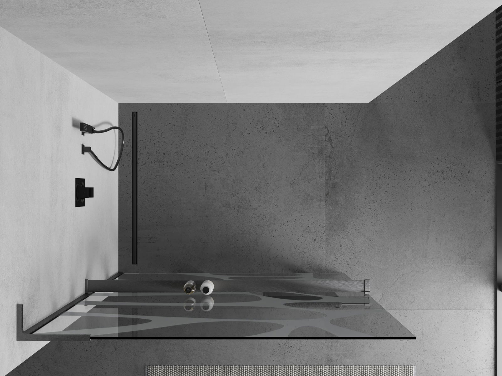 Mexen Kioto+ L paroi de douche avec étagère Walk-in 90 x 200 cm, vague blanche, gun gray brossé - 800-090-123-66-97