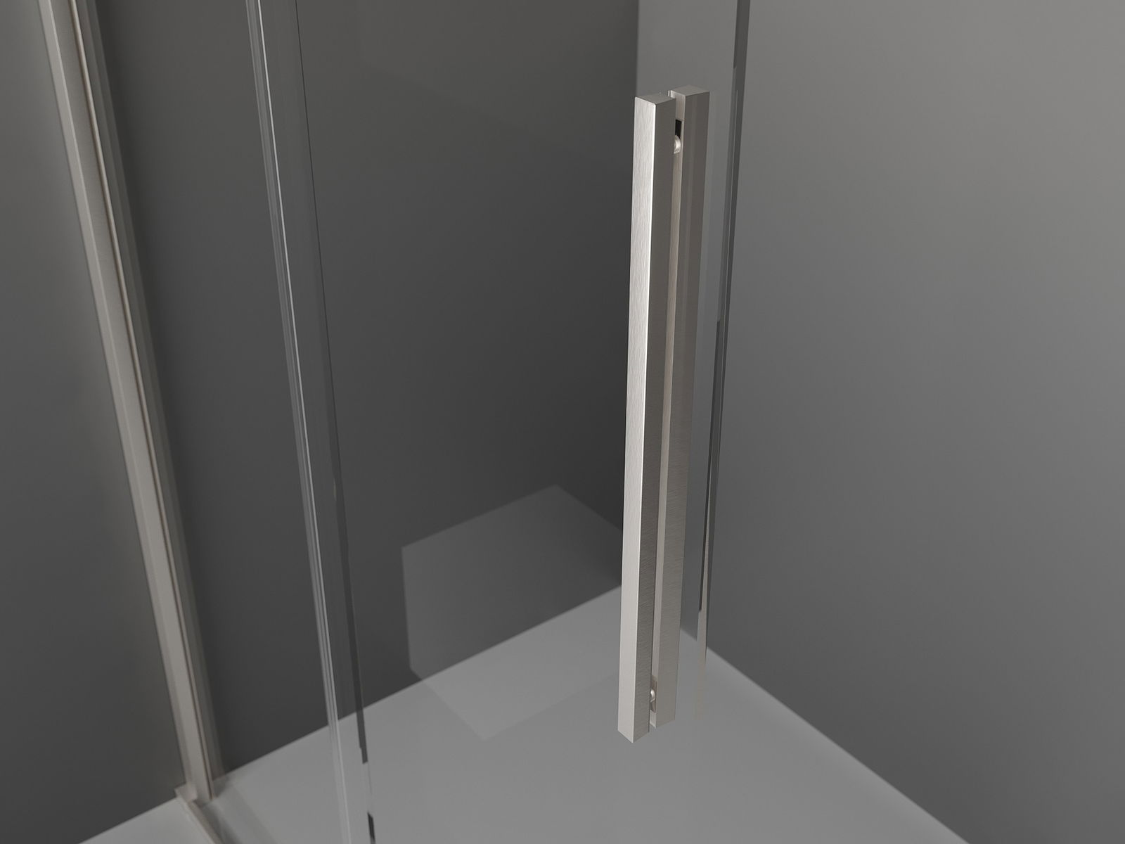 Poignée pratique et confortable en acier inoxydable. La forme moderne associée à une finition assortie à la couleur des profilés confère à l'ensemble un aspect moderne et élégant, soulignant l'esthétique de chaque salle de bain.