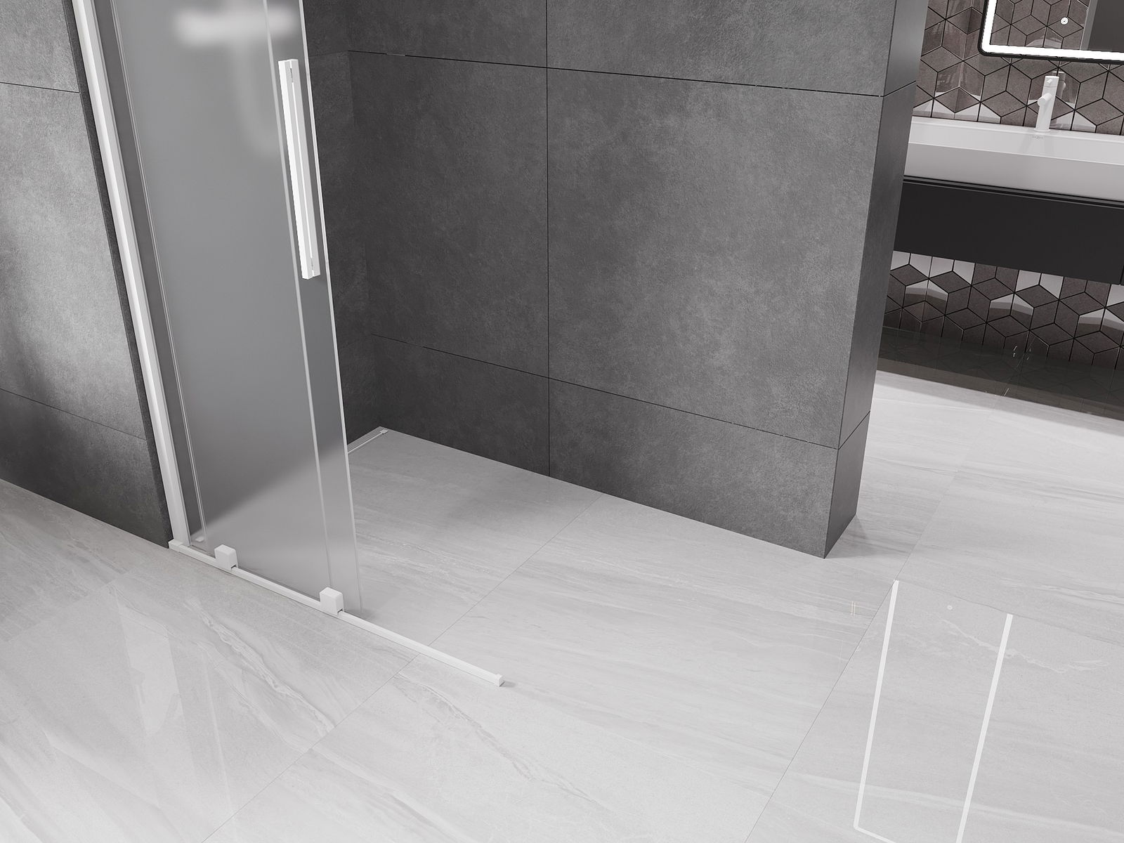 Mexen Velar paroi de douche coulissante Walk-in 120 x 200 cm, givre 8 mm, blanche - 871-120-000-33-20