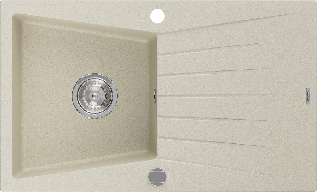 Mexen Cesar évier en granit à 1 bac avec égouttoir 775 x 470 mm, beige, siphon chromé - 6514771010-69