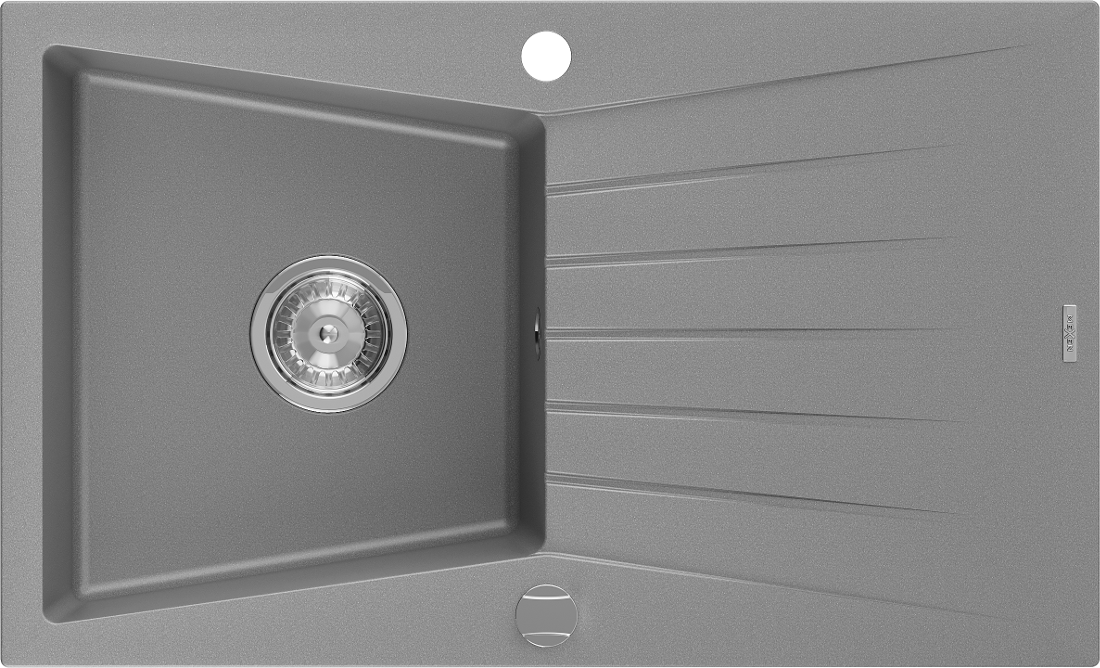 Mexen Cesar évier en granit à 1 bac avec égouttoir 775 x 470 mm, gris, siphon chromé - 6514771010-71