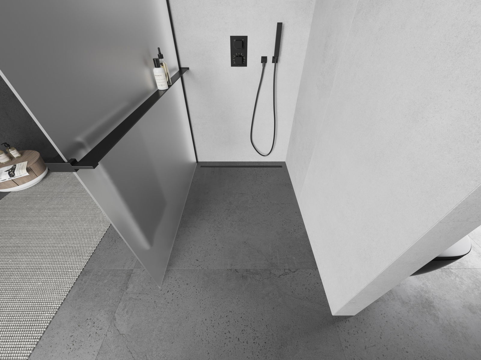 Mexen Kioto+ L paroi de douche avec étagère Walk-in 120 x 200 cm, givré, noir - 800-120-123-70-30
