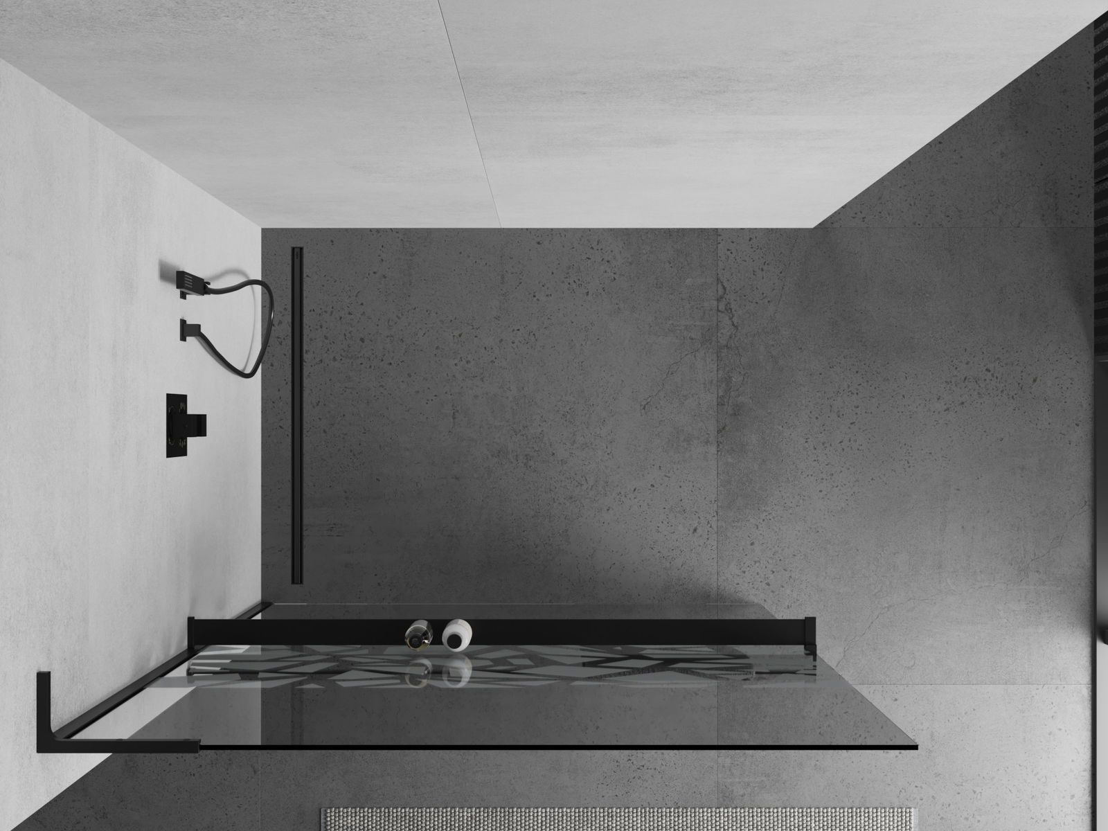Mexen Kioto+ L Cloison de douche avec étagère Walk-in 80 x 200 cm, motif blanc, noir - 800-080-123-70-85