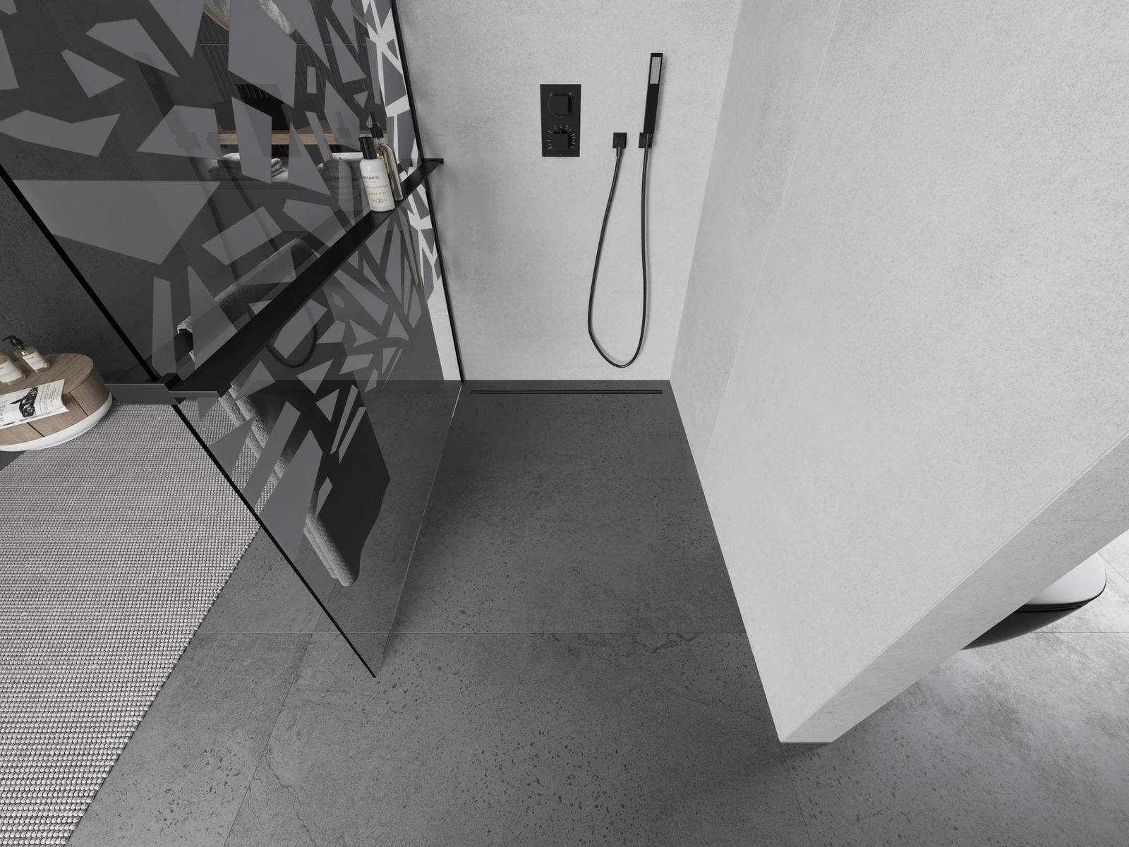 Mexen Kioto+ L paroi de douche avec étagère Walk-in 90 x 200 cm, motif blanc, noir - 800-090-123-70-85