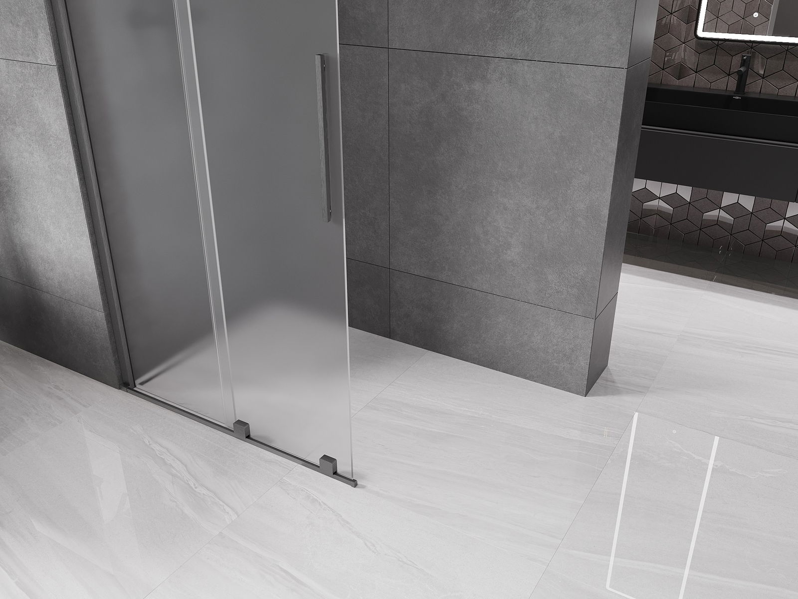 Mexen Velar paroi de douche coulissante Walk-in 80 x 200 cm, givrée 8 mm, gris canon brossé - 871-080-000-33-66