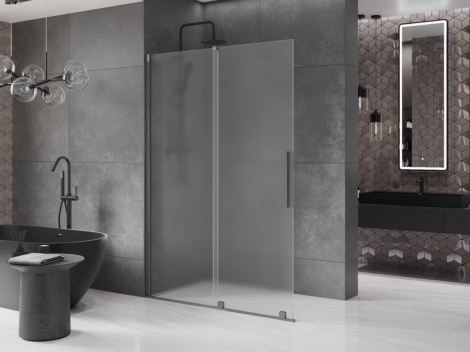 Mexen Velar paroi de douche coulissante Walk-in 140 x 200 cm, givre 8 mm, gris canon brossé - 871-140-000-33-66