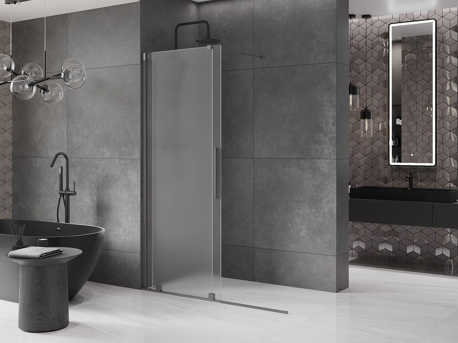 Mexen Velar paroi de douche coulissante Walk-in 160 x 200 cm, givré 8 mm, gris canon brossé - 871-160-000-33-66