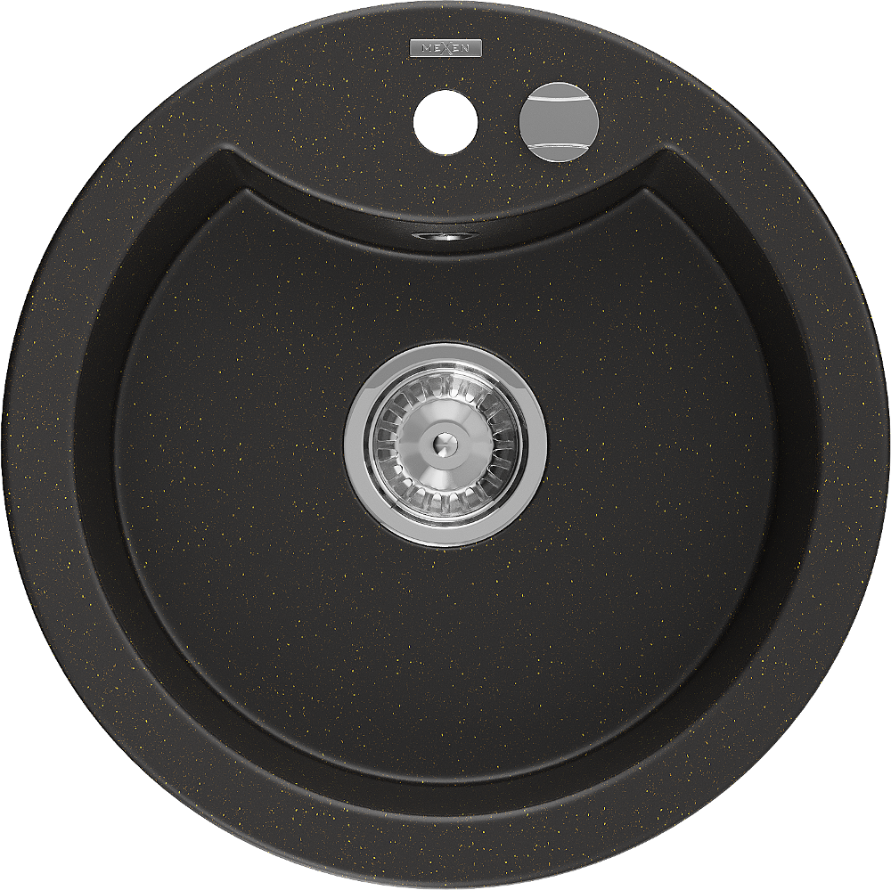Mexen Diego évier en granit à 1 bac 488 x 480 mm, noir/or métallique, siphon chromé - 6512481000-75