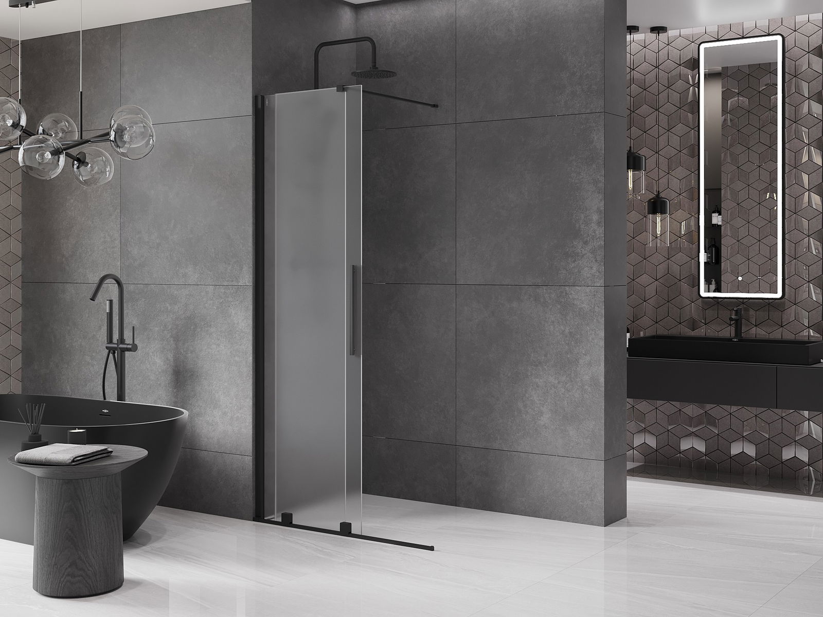 Mexen Velar paroi de douche coulissante Walk-in 80 x 200 cm, givrée 8 mm, noire - 871-080-000-33-70