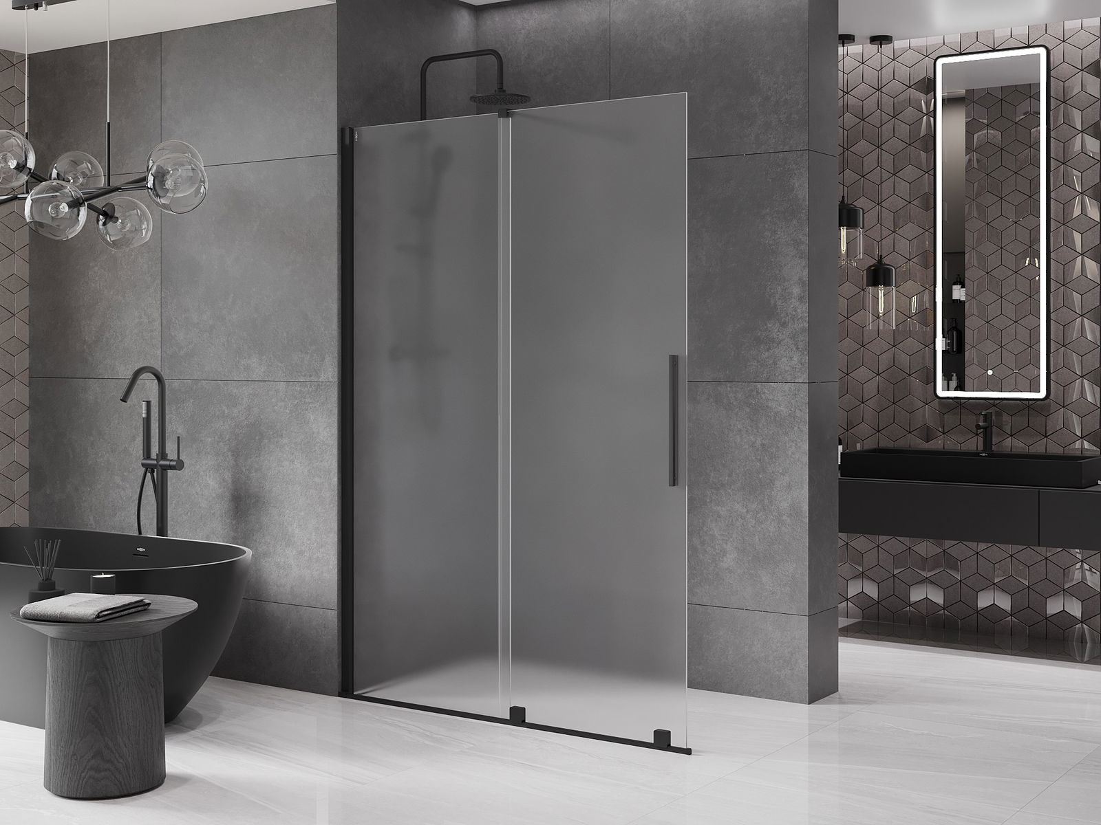 Mexen Velar paroi de douche coulissante Walk-in 140 x 200 cm, verre dépoli 8 mm, noir - 871-140-000-33-70