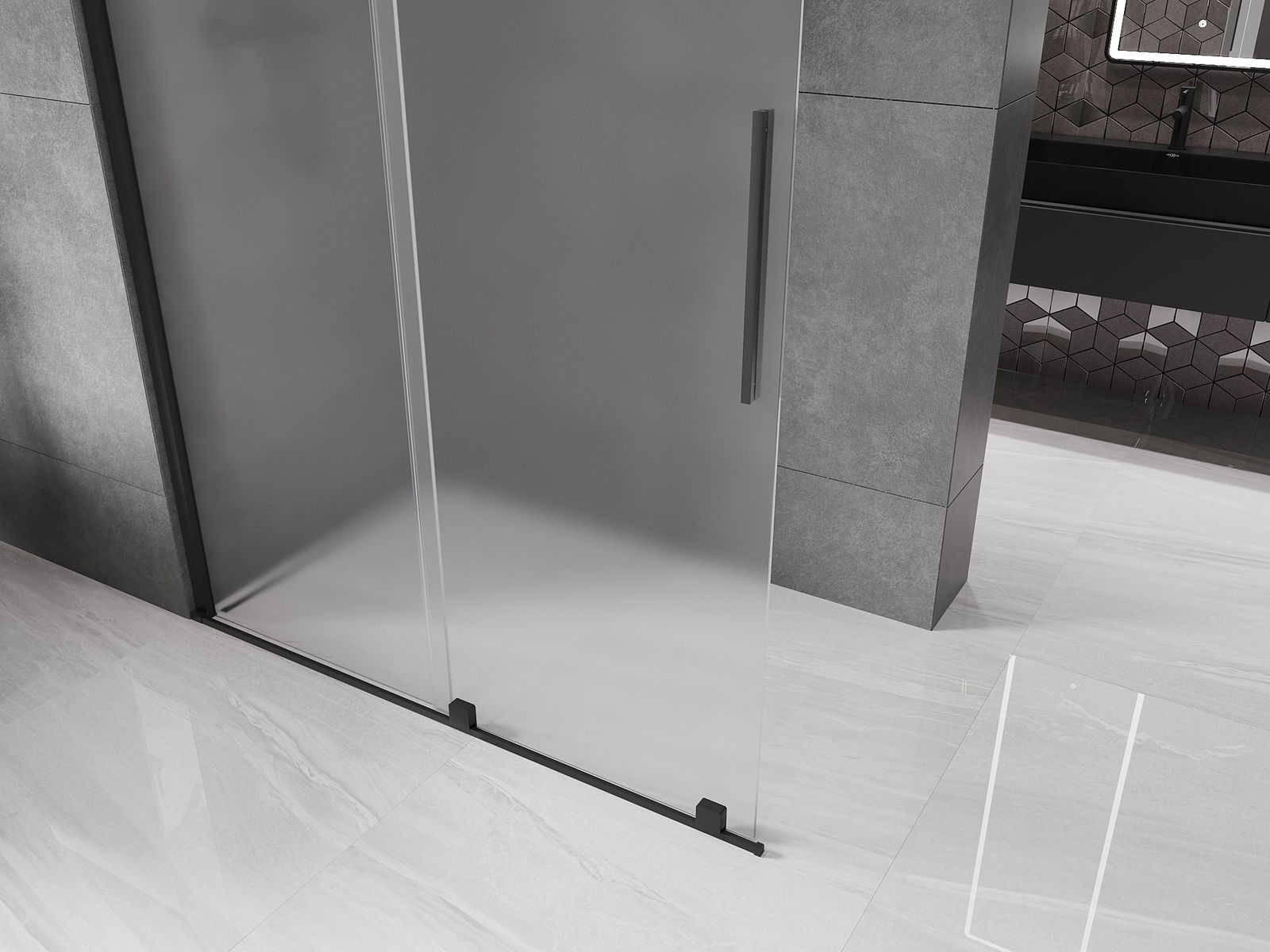 Mexen Velar paroi de douche coulissante Walk-in 150 x 200 cm, givre 8 mm, noir - 871-150-000-33-70