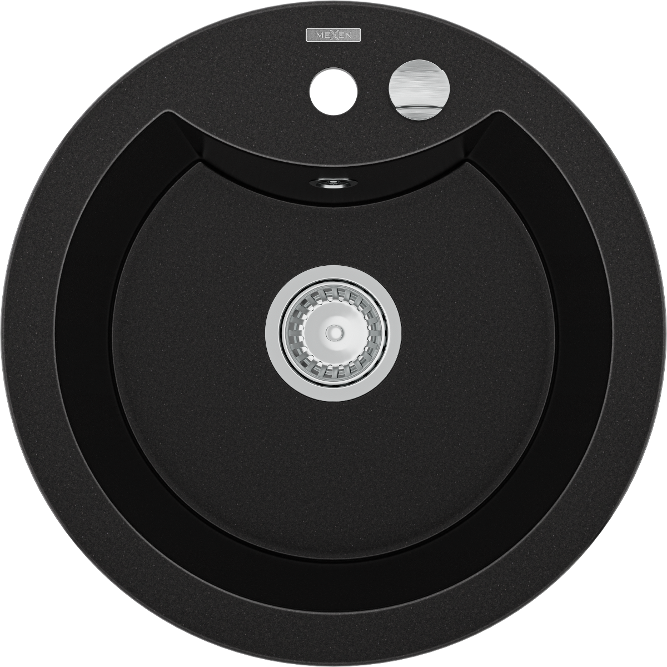Mexen Diego évier en granit 1-bassin 488 x 480 mm, noir, siphon chromé - 6512481000-77
