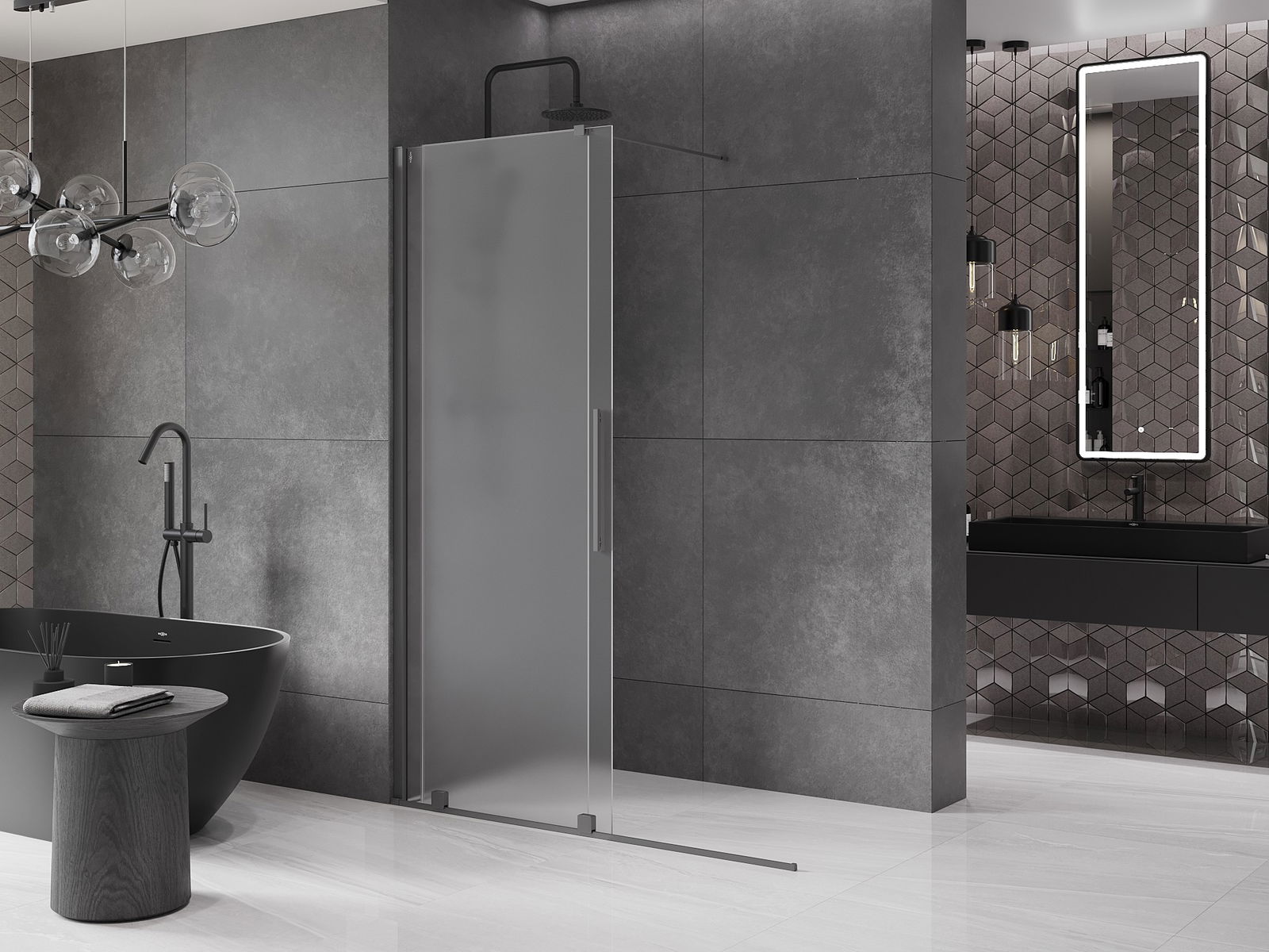 Mexen Velar paroi de douche coulissante Walk-in 150 x 200 cm, givre 8 mm, gun metal - 871-150-000-33-95