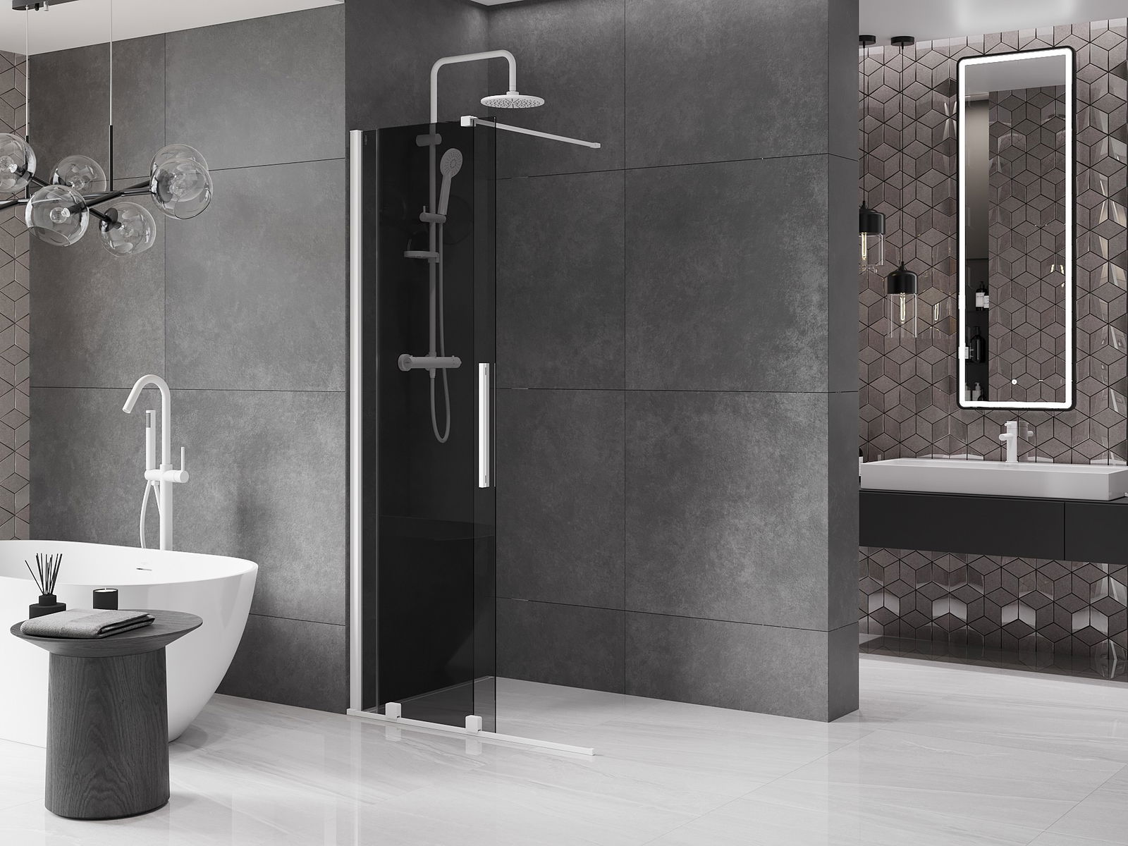Mexen Velar paroi de douche coulissante Walk-in 75 x 200 cm, graphite 8 mm, blanc - 871-075-000-43-20