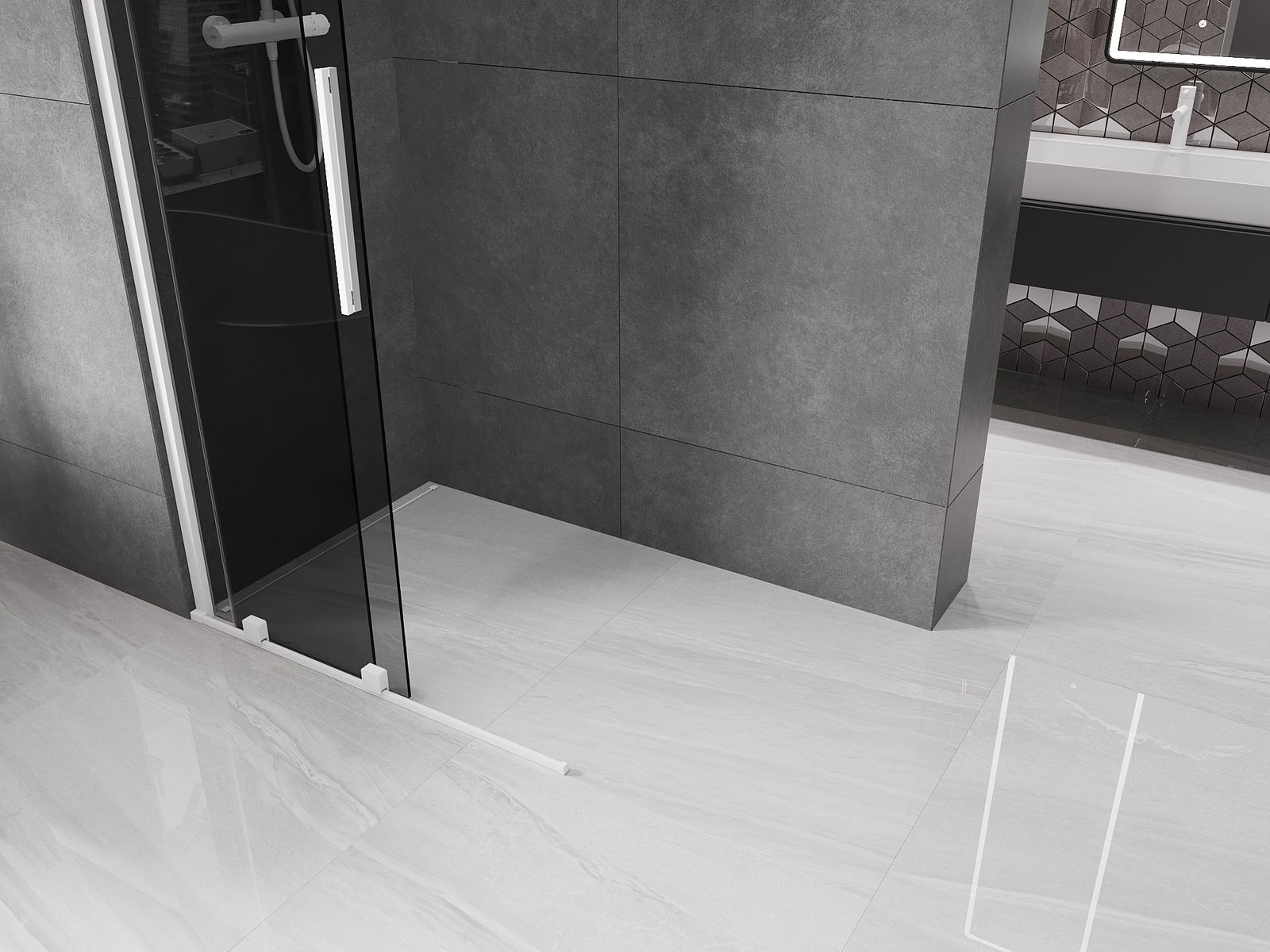 Mexen Velar paroi de douche coulissante Walk-in 85 x 200 cm, graphite 8 mm, blanc - 871-085-000-43-20