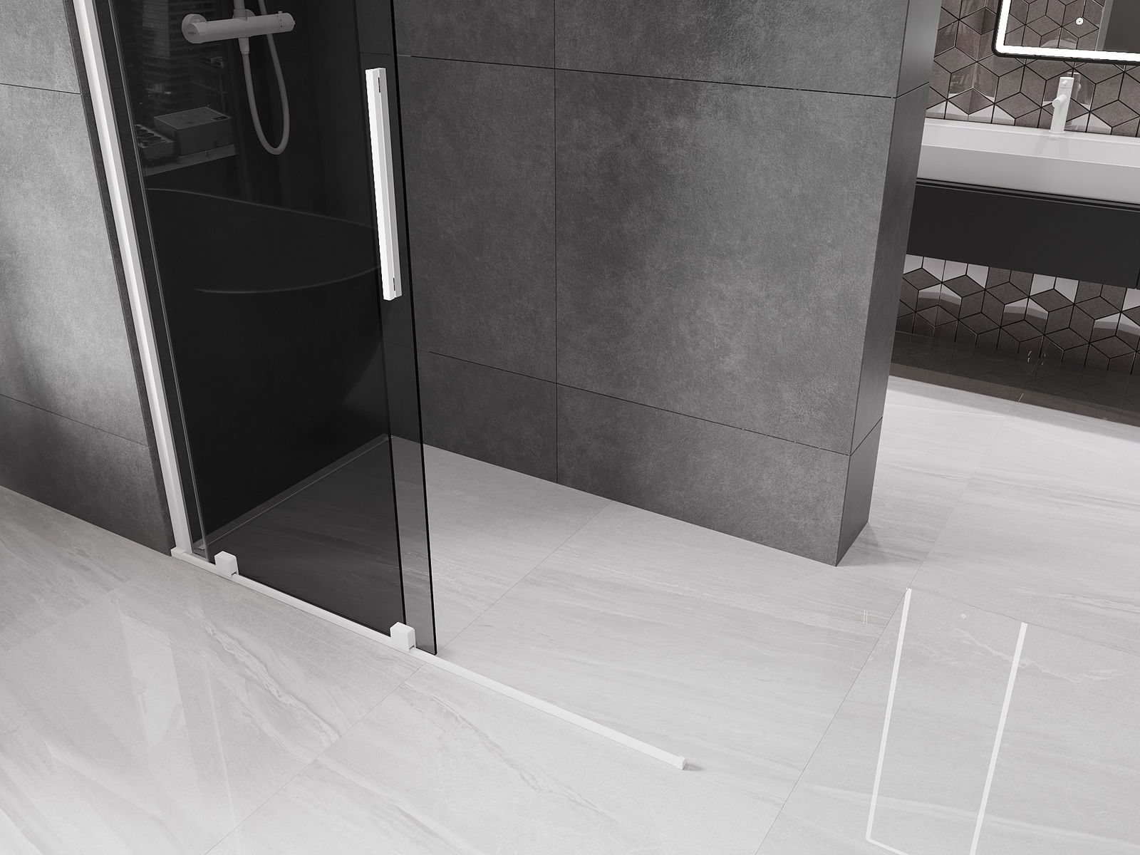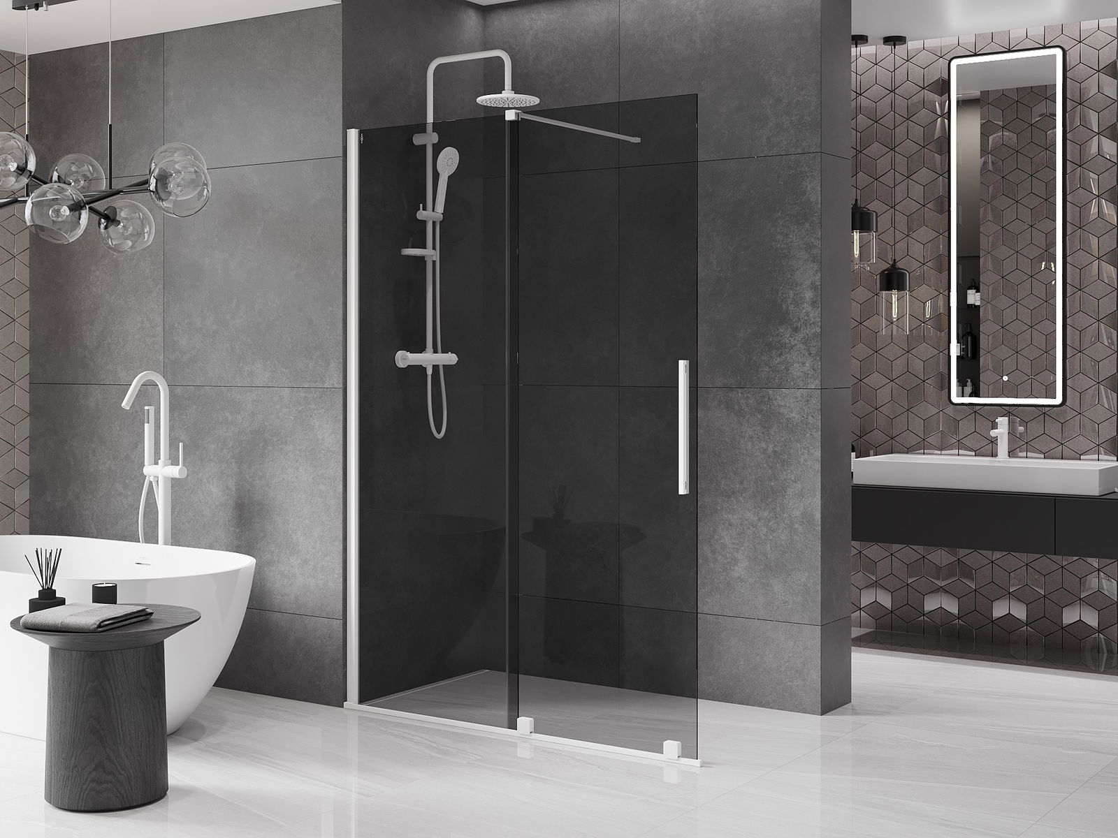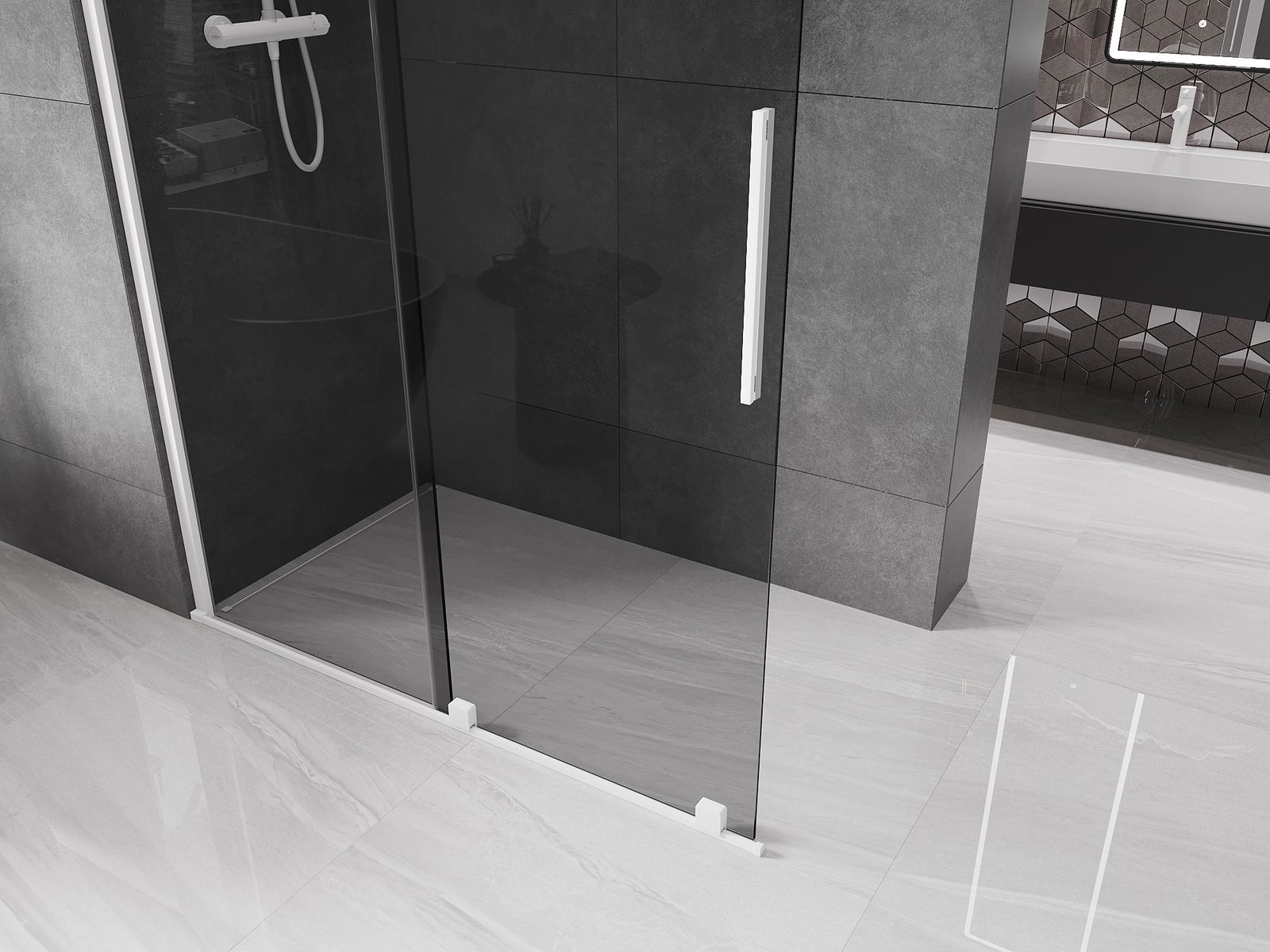 Mexen Velar paroi de douche coulissante Walk-in 150 x 200 cm, graphite 8 mm, blanc - 871-150-000-43-20